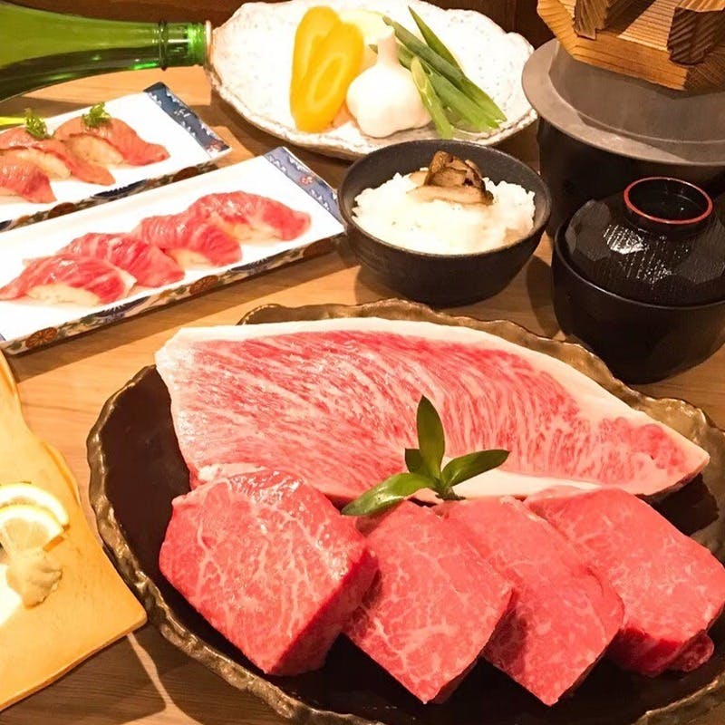 【三宮駅西口より徒歩5分】神戸牛、黒毛和牛にこだわり、炭火焼きで豪快にステーキなどを提供している肉割烹です。当店ならではの肉の旨味を駆使し、刺身、寿司、釜飯などの逸品を多数取り揃えております。上質なお肉を引き立てる、地酒や地ウイスキー、ワインなどお酒も幅広く厳選しています。大正ロマンをイメージした風情溢れる落ち着いた空間でゆったりと至福の<肉>の時間をお愉しみください。