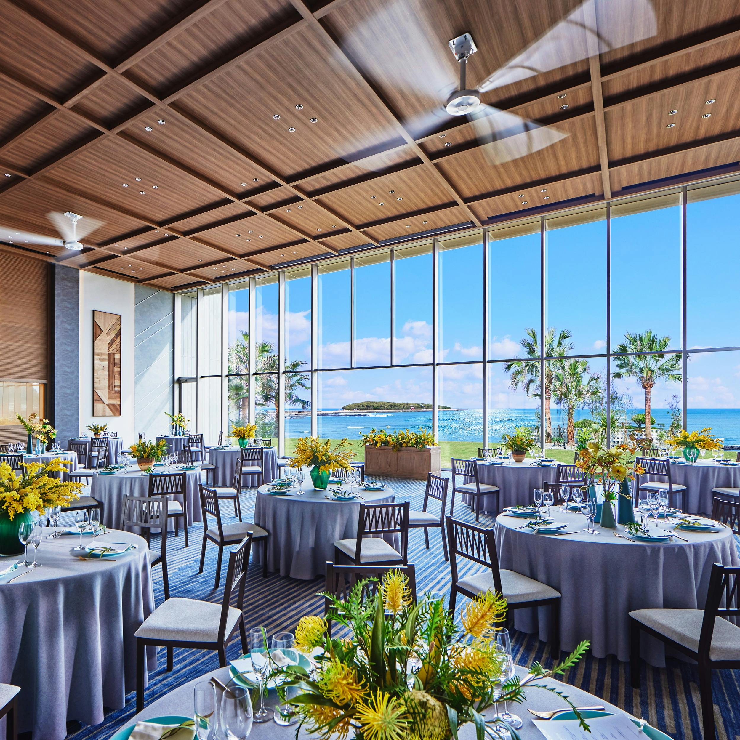 太平洋と青島を見渡す唯一無二のロケーションを全室オーシャンビューで存分に体感できる【アマンダンブルー青島】。 新鮮な地物野菜に日向灘の海産物、宮崎牛など県内の豊かな食材をふんだんに使い本物のおいしさを追求しご提供いたします。