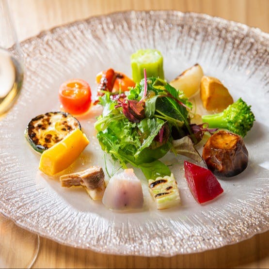 WineBar Pluribusでは「日本×世界」をテーマに、作り手の想いが込められた美味しい野菜をイタリアンシェフが調理し、ワインに合う形でコース提供しています。世界中の美味しい高級ワインと料理のペアリングは、月毎に変わり季節を感じる仕立ての美しい仕上がりです。 大切な方と、ワインを楽しむ至福の時間をゆっくりとお楽しみくださいませ。