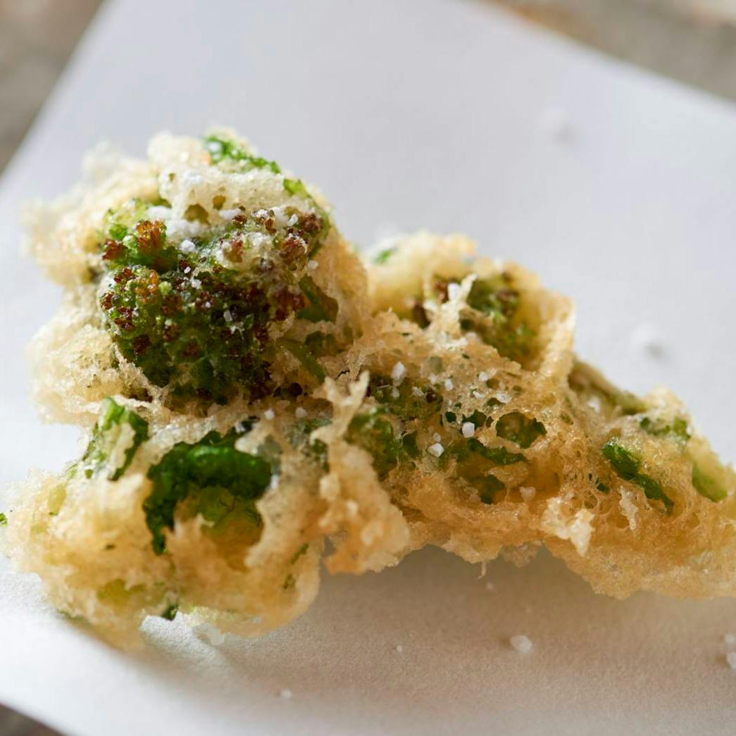 名店で研鑽を重ねた若き天ぷら職人がもてなす、日本橋注目の一軒。メニューは昼夜ともに季節の食材たちで織りなす、おまかせのコースのみ。天ぷらというジャンルを牽引してきた“食材一本を尊重し、薄い衣の天ぷらを塩でいただく”スタイルに対して、浅沼氏が発信するのは“衣を味わう天ぷら”。食材と衣との一体感を求め、一つ一つの食材に合わせて天ぷら衣をブレンド。100%胡麻油でさっくりと揚げた天ぷらを、天つゆに浸していただくスタイルを採用しています。4名から貸し切り可能なため、接待などプライベートな場面にも活躍してくれるこちらのお店。食材と衣の調和によって織りなされる“衣を味わう天ぷら”の世界に酔いしれてみませんか。