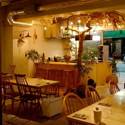 料理人歴25年位以上のシェフが腕を振るう料理は、イタリアンの枠を超えて、ワインに合わせたオリジナル料理を楽しんでいただけます。 レストラン、ワインショップ、書店など様々な顔を持つ当店は、“人が開放感とリラックスを求めて心地よく集まれる場所”をコンセプトとしております。