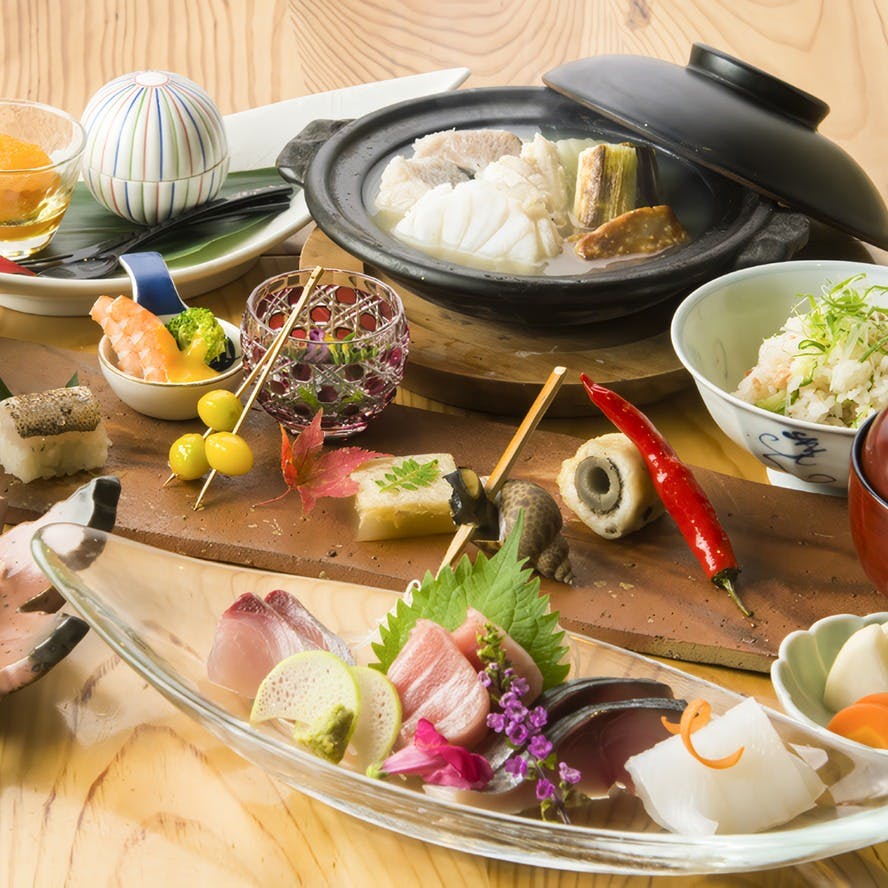 新宿・花園神社近くで13年続く割烹料理店「りん」。全国各地から直送の厳選した魚や採れたての京野菜が楽しめます。鮮魚は料理人自らが全国各地の漁港に足を運び、厳選して仕入れ、漁獲された後に鮮度を保つため放血神経締め処理された魚や、職人の目利きで旨味がピークの状態にされた熟成魚などが豊富に揃います。野菜も京野菜マイスターに認定されている生産者から取り寄せ、四季折々の旬のものが楽しめるのも魅力的。