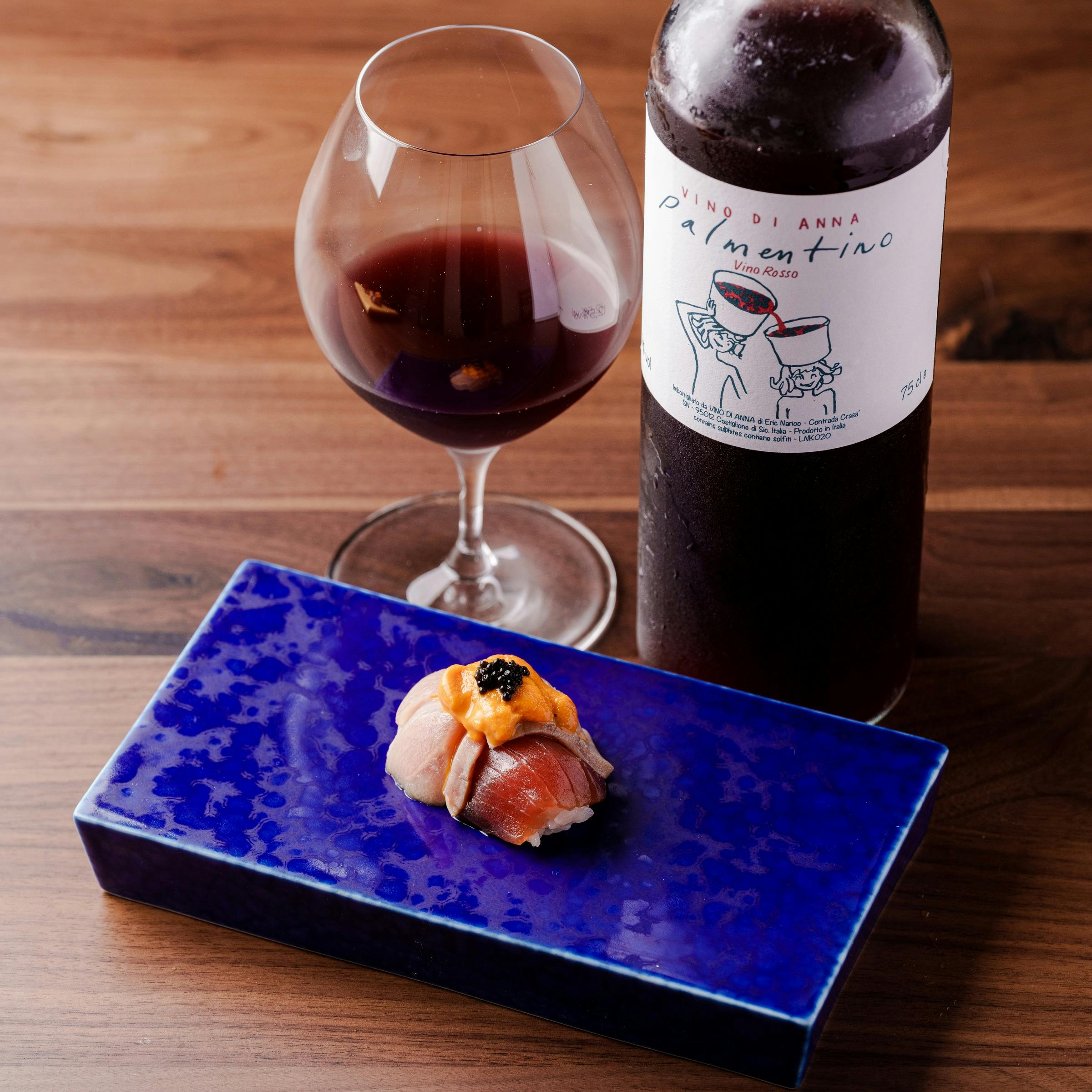 当店は、料理人が長年培ってきた、繊細な技術と「寿司」「ワイン」をテーマにしたコース一品のみご提供。 四季折々の旬な食材を使用した寿司やエルメス一族も出資する最高級キャビア「キャビア・ド・ヌーヴィック」を使用したお料理などをご用意。 ソムリエが厳選したワインと共にお愉しみいただけます。 落ち着いた空間が広がる店内で、寿司とワインの新しい楽しみ方を思う存分ご堪能ください。
