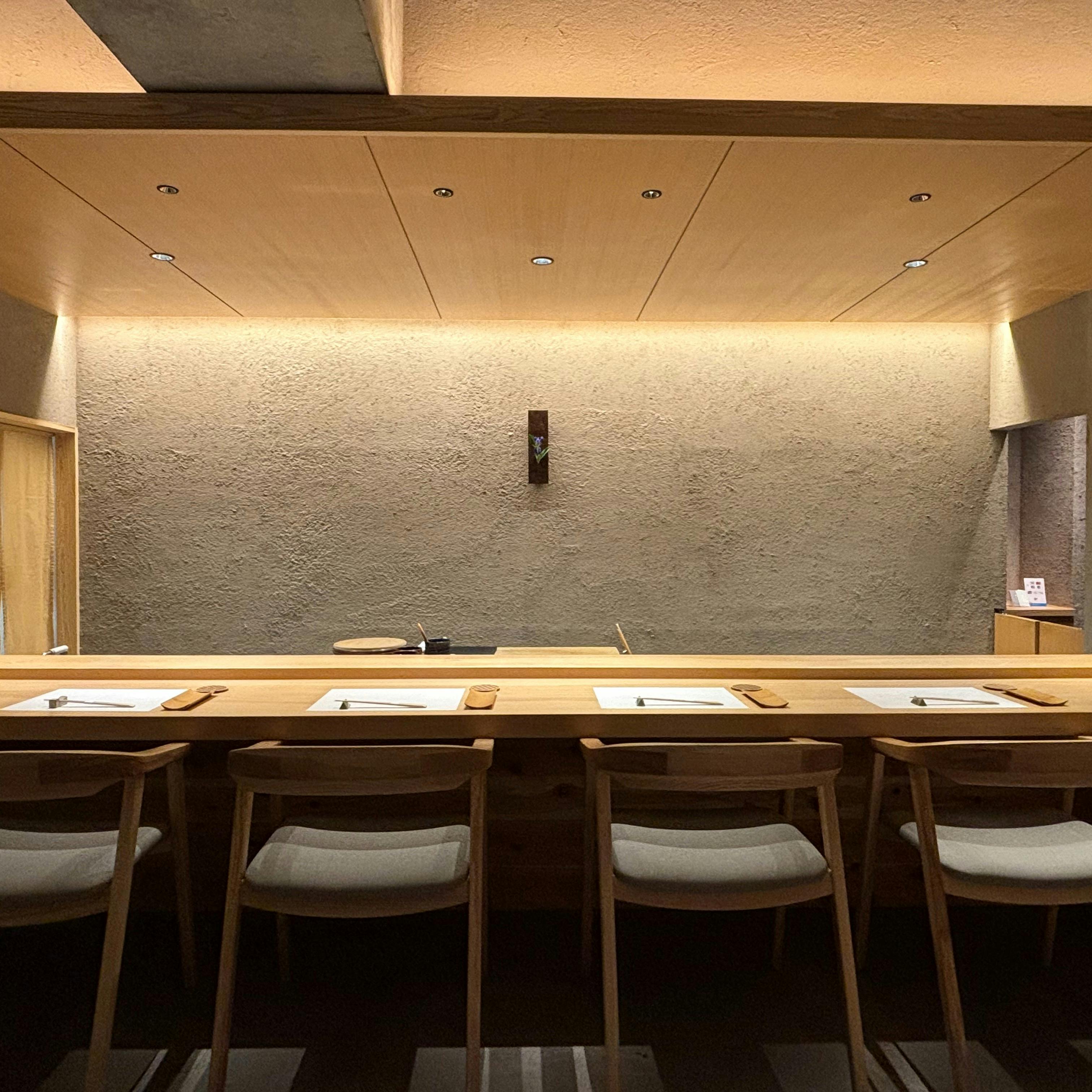 高級感がありながら、どこか安らぎを与えてくれる温かみある店内にはカウンターのみをご用意。料理人が施す細かい手捌きと共にお楽しみいただける特等席です。長年お付き合いのある業者より仕入れる魚介は鮮度抜群。リーズナブルに質の高い品々をご提供します。四季折々の旬ものをたっぷり含んだおまかせコースにて、素材そのものを満喫ください。 6~7名様にて貸切もできますので、特別な日や日頃のちょっとした贅沢にどうぞ。