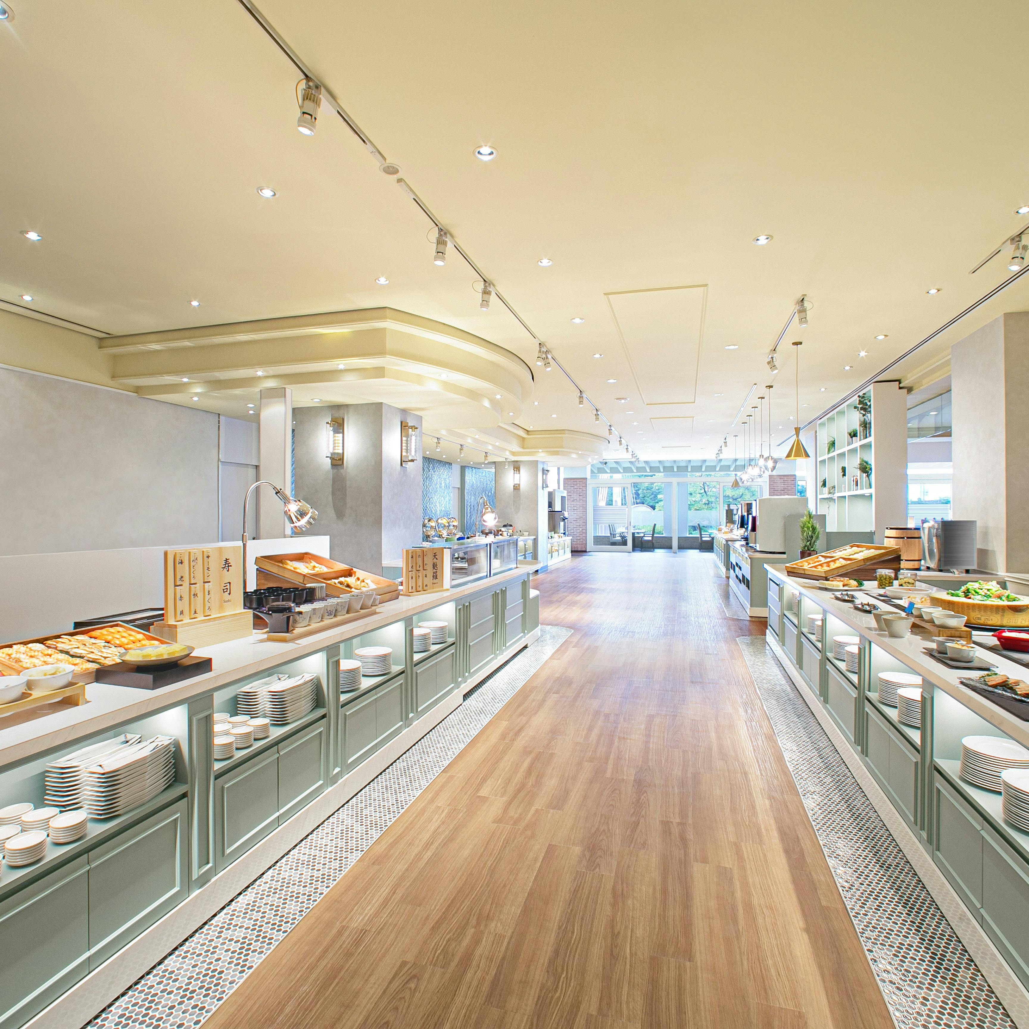 リニューアル後のグランサンクはライブ感あふれるオールデイダイニングを目指し、洋食をメインに寿司・天ぷら・鉄板焼きと人気の和食メニューをくわえた和洋食ブッフェへ生まれ変わります。 ライブキッチンでは熟練シェフによりお客様の目の前で調理されたシズル感溢れる出来立て料理の数々をお楽しみいただけます。