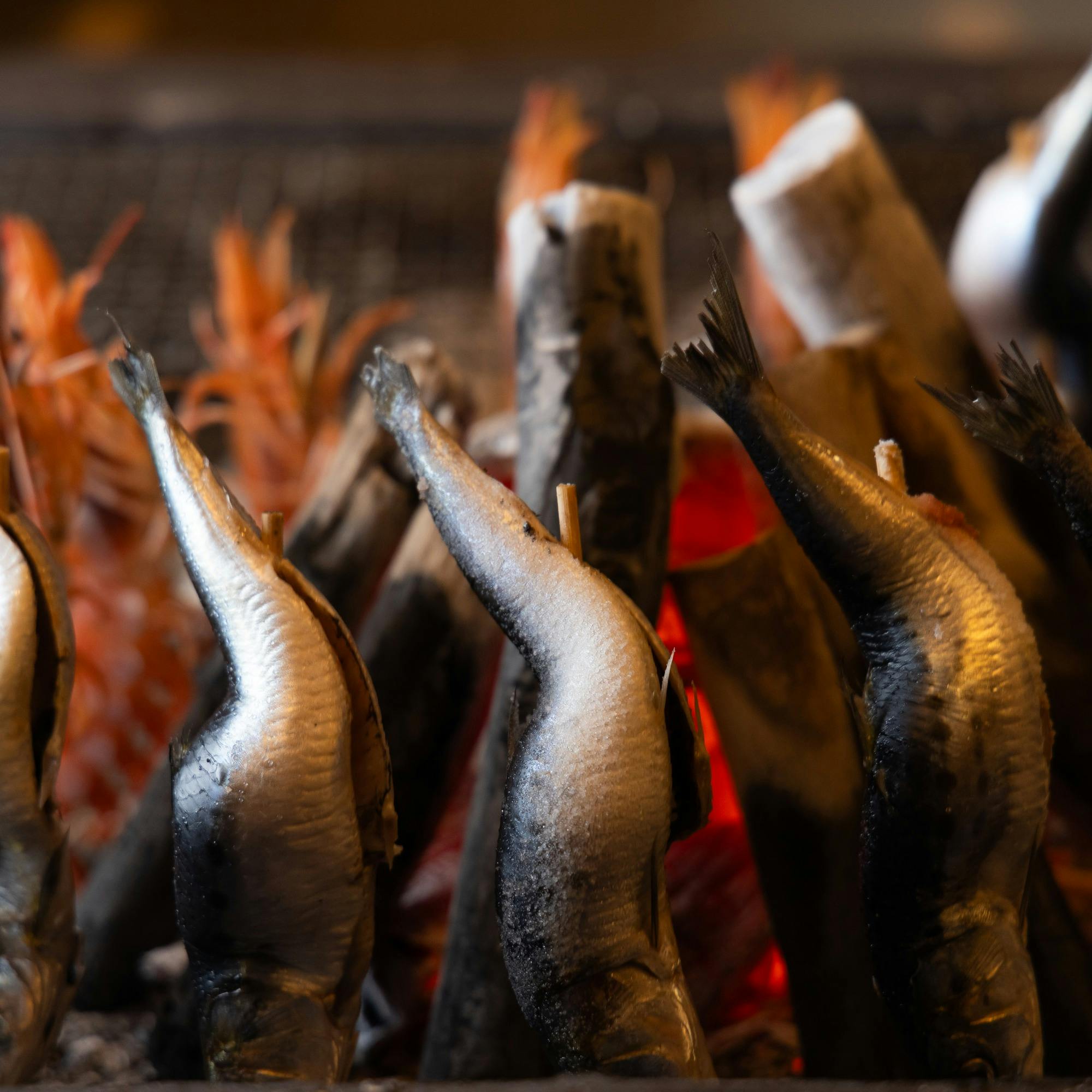 すすきの駅5分 北海道産食材を中心に、全国各地から取り寄せる旬食材をシンプルに味わえる【北海道炉端焼き 篝-kagari- 炉端焼き】。遠赤外線が得られる『北海木炭』を採用し、魚は囲炉裏に立てて焼く『原始焼き』でご提供いたします。また全国から厳選した日本酒をセラーで管理しております。選りすぐりの日本酒やワイン片手に、素材の持ち味を存分に活かした炉端焼きをご堪能ください。