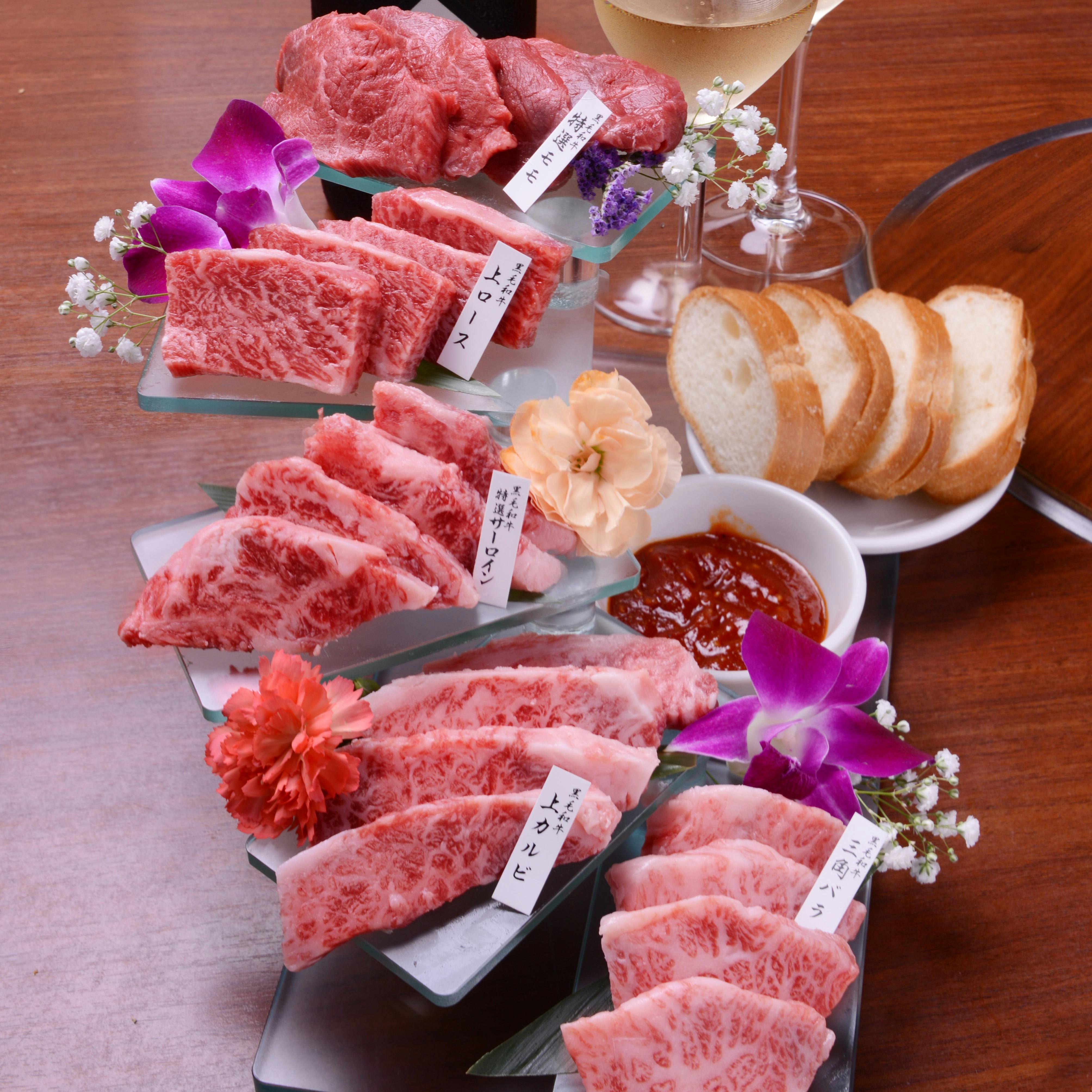 烏丸駅から徒歩5分に位置する「焼肉いってつ」。鹿児島などの九州地方から仕入れた上質な黒毛和牛とワインが気軽に楽しめる焼肉店です。黒毛和牛の中でも厳選された特別な部位を5種そろえた5種盛りや、部位ごとに調理方法を変え、肉の旨味が感じられるように仕上げた肉寿司など、人気メニューを多数ご用意しております。店内にはテーブル席とカウンター席を用意しており、幅広いシーンにてご利用可能です。是非一度上質なお肉の食べ比べをお愉しみ下さい。
