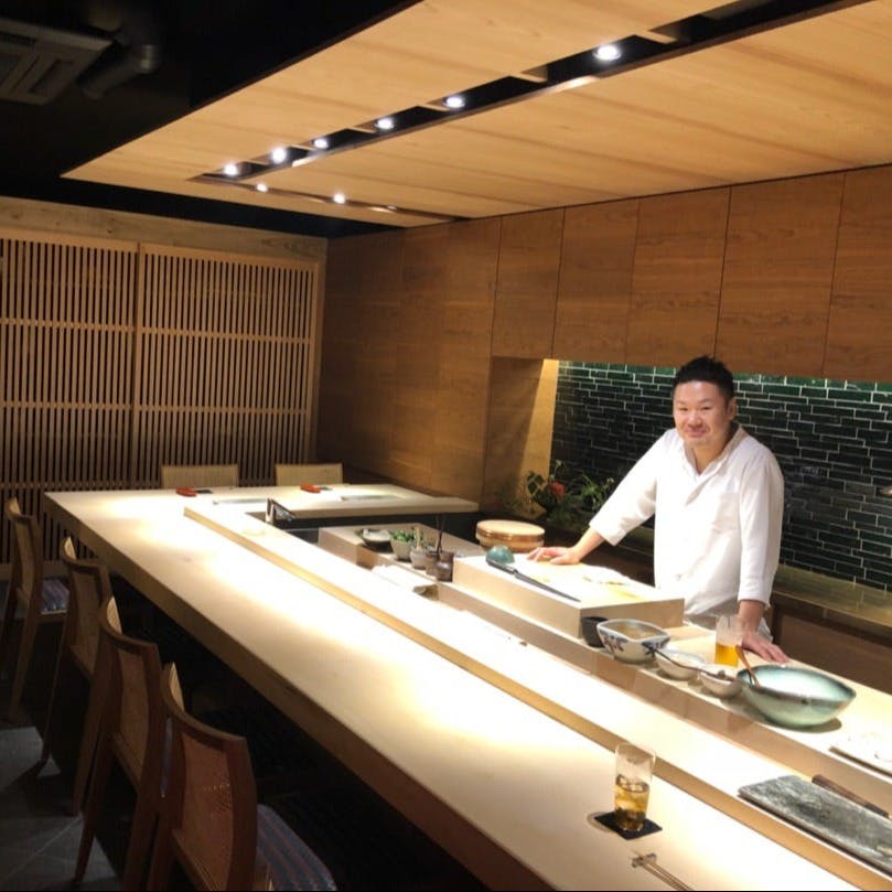 【鮨たか山】は旬の一番うまい魚を厳選し、お客様にご提供しています。重厚感のある扉のその先はやわらかい光と木のぬくもりが感じられる空間になっております。店内はカウンター席をご用意しており、店主との会話も楽しみながらお楽しみいただけます。美味しいお料理を食べながら、至福の時間をお過ごしください。お客様の心に残る特別な体験を提供いたします。