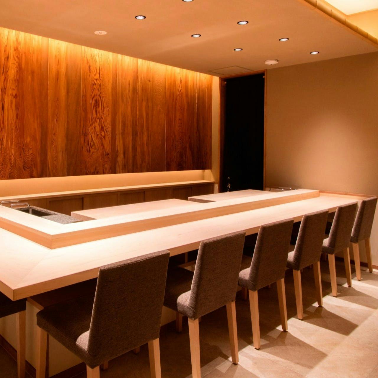 一つ星獲得実績店の大将「尾崎淳」直伝の確かな目利きで仕入れる厳選素材。 若手職人が修練を積み続け、新たな大将として握る江戸前鮨。 稀少なお酒からお茶まで取りそろえたお飲み物付きのおまかせコース。 肩肘を張らない楽しいひとときを「お値打ち価格」で提供いたします。