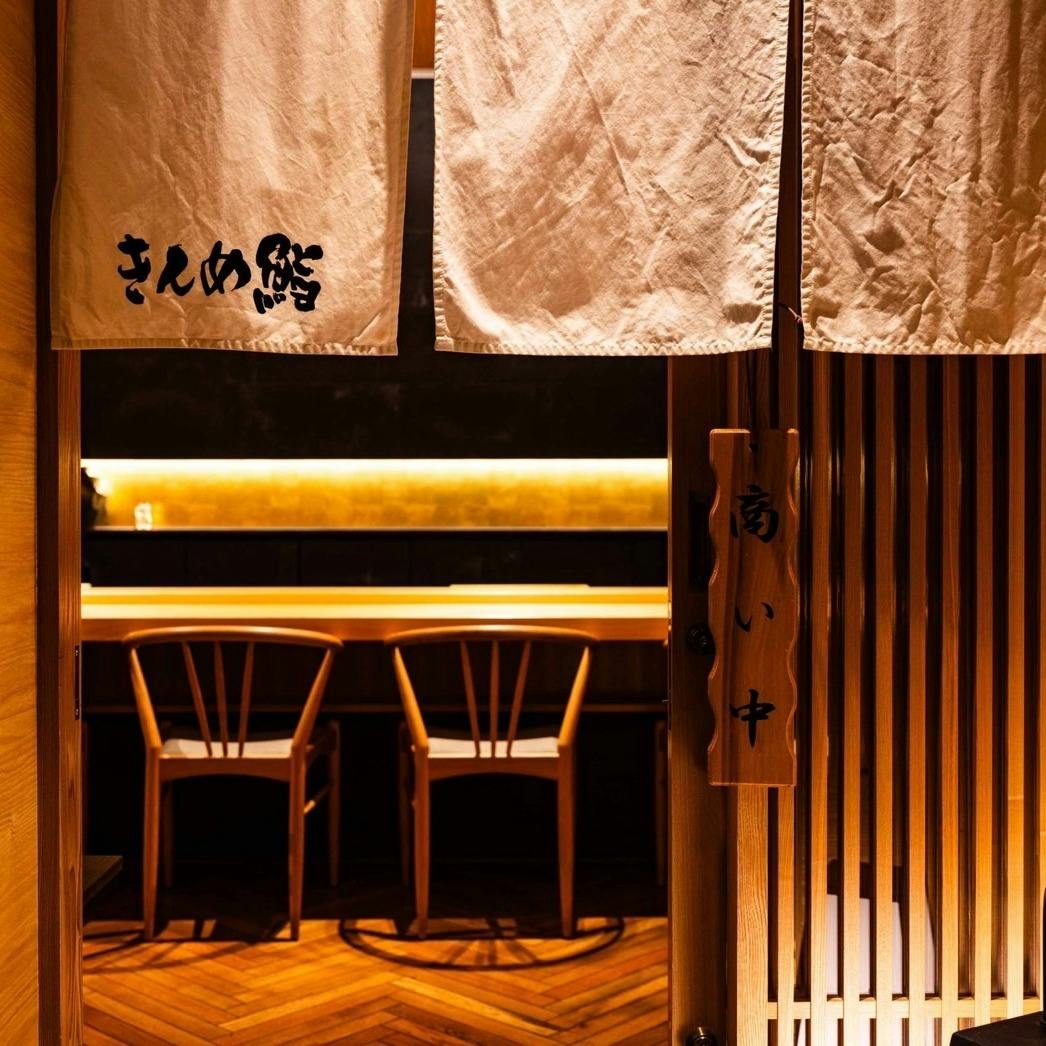 六本木駅直ぐ、 GEMS六本木の地下に広がるまさに知る人ぞ知る隠れ家が当店でございます。席数はカウンター10席と個室のみ、白木調の木の温もりを感じられる店内は、高級感溢れる落ち着いた大人の雰囲気を感じていただけます。 デートや会食、接待といった大切な方とのお食事に、優しい照明のもと、職人が丁寧に仕上げる”すし和食”を、ぜひご堪能ください。