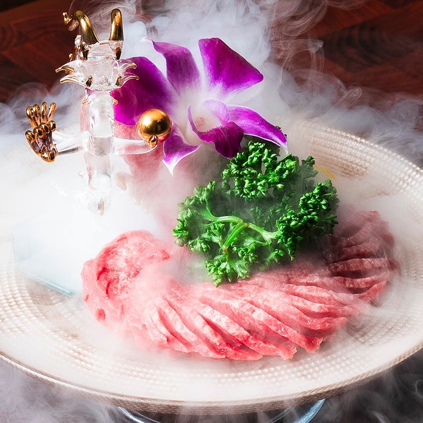 幻の本生わさびと和牛による至高の焼肉体験を。使用するのは肉の匠が惚れ込んだ和牛と湧水だけ栽培した「幻の望月わさび」。サシが特徴の和牛に、爽やかな香りのわさびをたっぷりつけて食べることで、脂をすっきりとさせ、肉の旨味が最大限に引き出されます。しかも、わさびの爽やかさが脂と中和するので、重さを感じずに、最後まで美味しく食べれるのも特徴。わさびの辛さが苦手な方でも、辛味を感じずにお楽しみいただけます。 今までに感じたことのない、至高の焼肉体験を飯田橋で是非ご堪能ください。