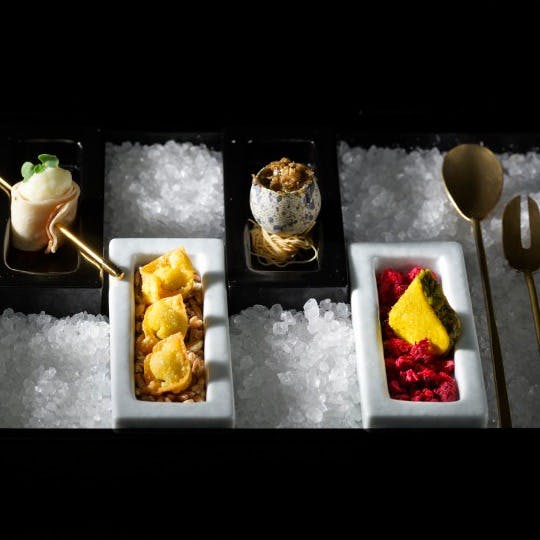 イタリアの2つ星レストランでスーシェフまで務めたシェフ「小川慎二」が、日本各地を訪ねて選んだ優れた日本の食材をイタリア料理の技術を用いてコース仕立ててご提供します。8席のみの客席からは、料理が出来上がる様子を臨場感たっぷりに楽しめます。ワインやティーペアリングとともに、劇場にいるかのような一体感をお楽しみください。 2024年ミシュランガイド東京にてニューセレクションとしてご掲載いただきました。