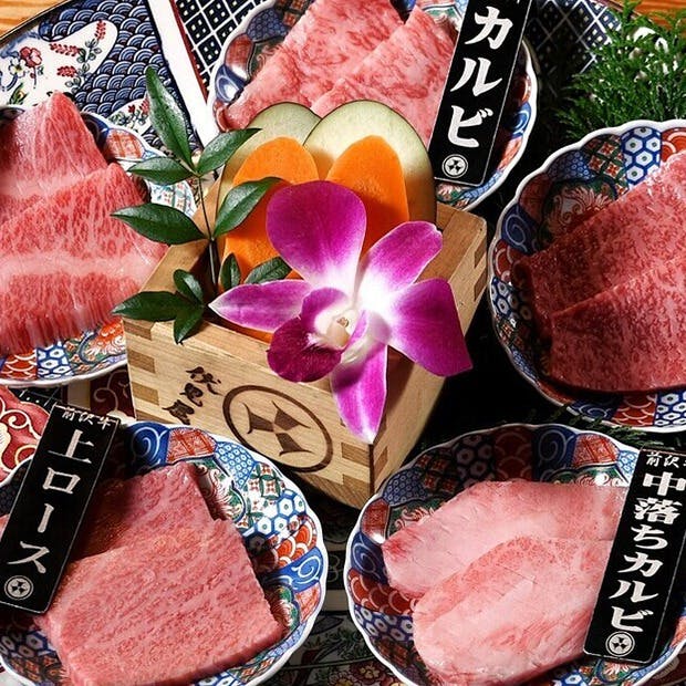 伏見駅から徒歩1分、肉通が唸る極上の前沢牛を個室空間で味わうことができる【前沢牛舎 伏見屋】 西の横綱松阪牛に対し、東の横綱と名高く、全国肉用牛枝肉共励会において何度も日本一に輝く最上級のブランド牛【前沢牛】がご堪能いただけます。当店は岩手前沢牛協会指定店で、名古屋で唯一の前沢牛専門店です。前沢牛を丸ごと一頭仕入れ、職人の技により無駄なくカットし、豊富な部位のメニュー内容でお楽しみいただけます。木の温もり漂う雰囲気の中、肉の芸術品と称される前沢牛を思う存分にご堪能ください。