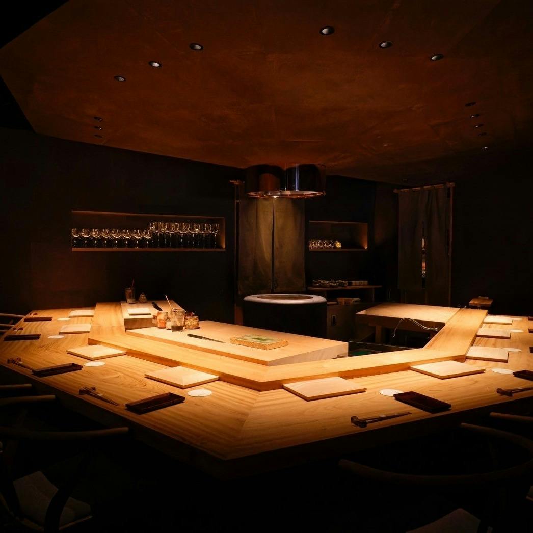 日本全国の漁港に足を運び、市場を介さない仕入れルートを構築。 各地の漁港から直送される旬の魚介類を、おまかせコースでご堪能ください。 東京 新橋の完全会員制の寿司店「鮨 鴉巣」の流れを汲んだメニューは、赤酢の寿司をメインに、造りや焼き物、しゃぶしゃぶが組み合わされます。 隠れ家のような店内で、旬の素材を使った鮨をご堪能ください。