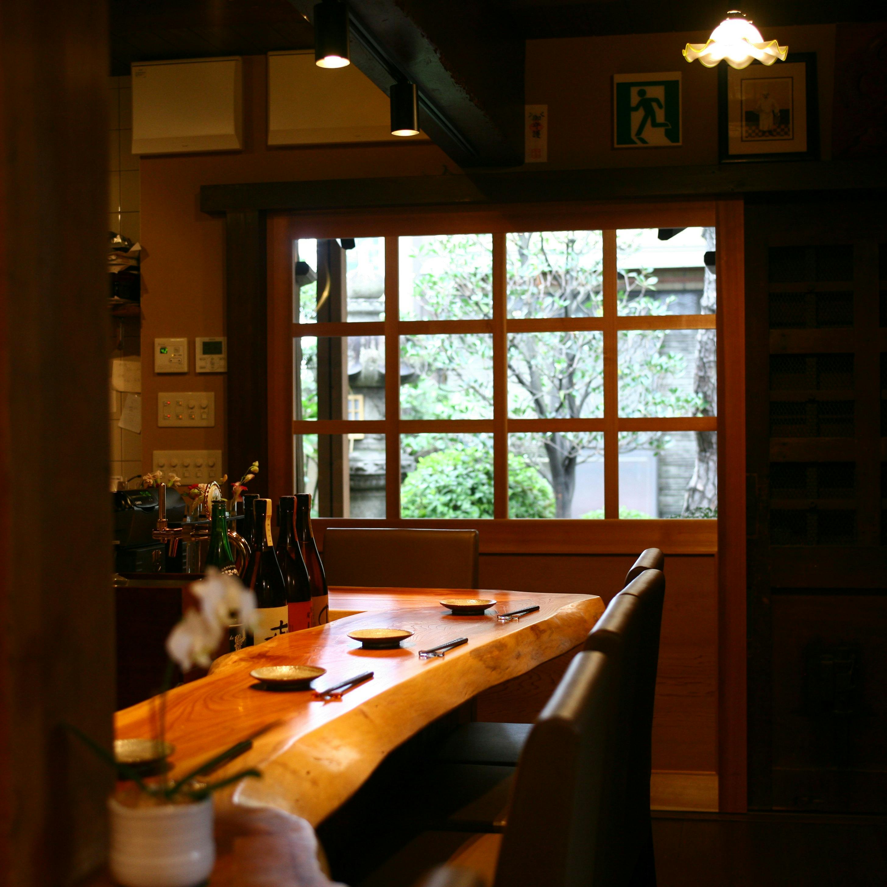 滋賀県、唐橋前駅より瀬田川を渡ってすぐの場所に位置する「炭火割烹蔓ききょう」。築100年の蔵を改装した趣のある店内にはカウンター席、2階には座敷をご用意。木をベースにしているため、あたたかく、落ち着いた雰囲気が漂います。使用する食材は滋賀産の月の輪熊などのジビエ、草津サカエヤさんの熟成させた牛肉・愛農ナチュラルポーク、全国にファンがいる淡海地鶏、琵琶湖の四季の恵みや天然魚、そして京都の上賀茂から仕入れる京野菜など。信頼している生産者から店主が厳選した滋味深いものばかりです。「旬の食材の持つ美味しさを味わっていただきたい。」という蔓ききょうの礎をもとに炭火で焼き、塩でお召し上がりいただきます。顔の見える生産者さんとの繋がりを大切にしているからこそできる「本物の食材の美味しさ」をご堪能下さい。