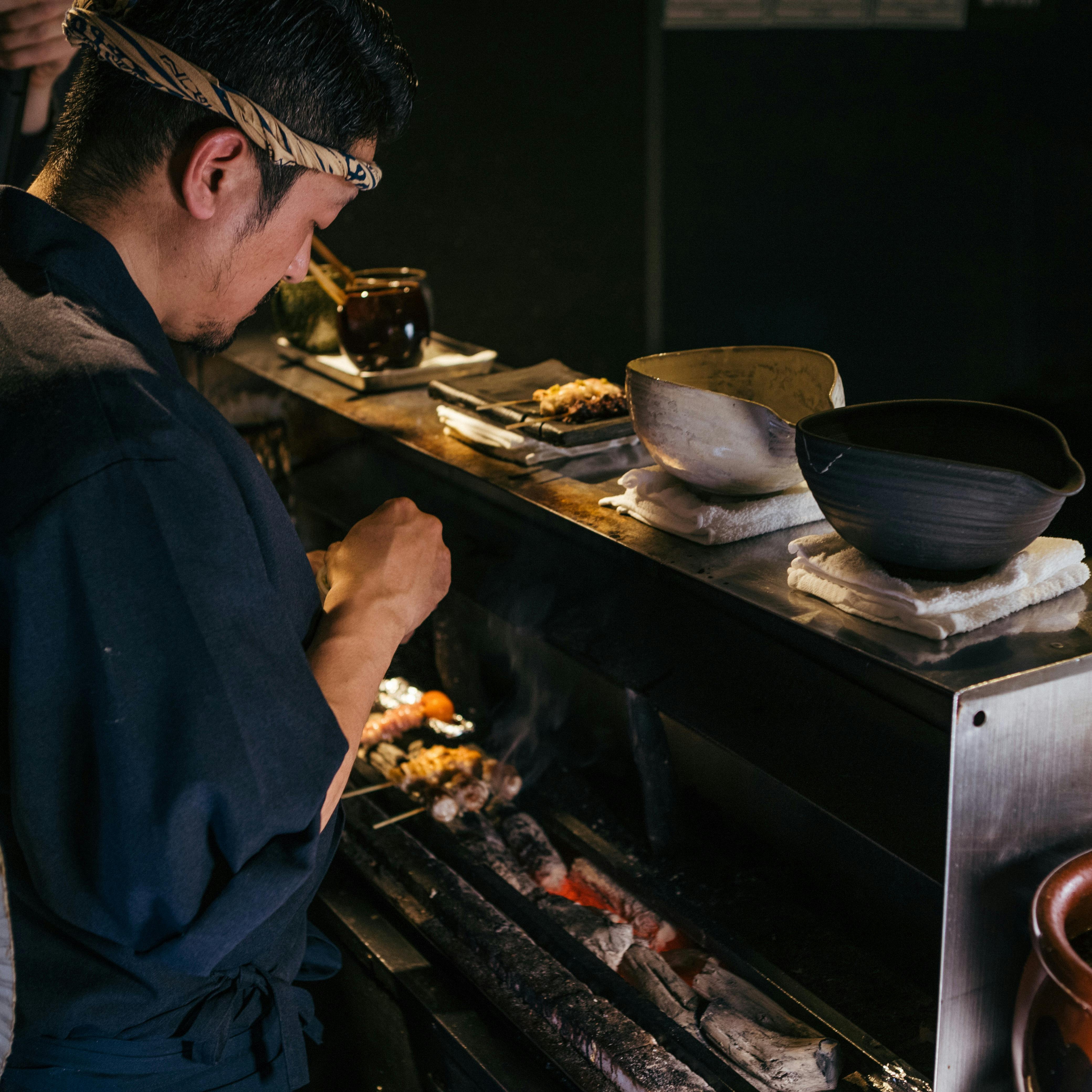 ジャズの流れるカウンターは洗練された大人の空間。都内のほか海外にも店舗を構える希少部位焼鳥の草分け的存在で。豊富に取り揃えた20種以上の希少部位を含む品書きの中には、『さえずり』、『きんちゃく』、『心のこり』などオーナーが名付けた部位も。味付けも部位ごとに工夫し、新鮮な鶏を今や希少な紀州備長炭でじっくり焼き上げます。モノトーンの落ち着いた空間で大切な方と美味しいお酒を傾けながら、ゆったりとした大人の時間をお過ごしください。