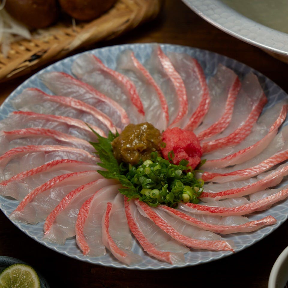 ■毎朝豊洲市場から直送される新鮮な金目鯛料理が自慢 金目鯛のしゃぶしゃぶや兜焼きなどの逸品が豊富 ■こだわりのコースは2種類のみご提供 金目鯛の煮付けやしゃぶしゃぶなど多彩な金目鯛料理が楽しめる 全8品 2時間飲み放題付9,000円~ ■総座席20席。カウンター席で は職人の手さばきを間近で楽しめる 落ち着いた雰囲気の店内は大切な日のディナーや接待にも最適 15名~20名様まで貸切の対応可能です