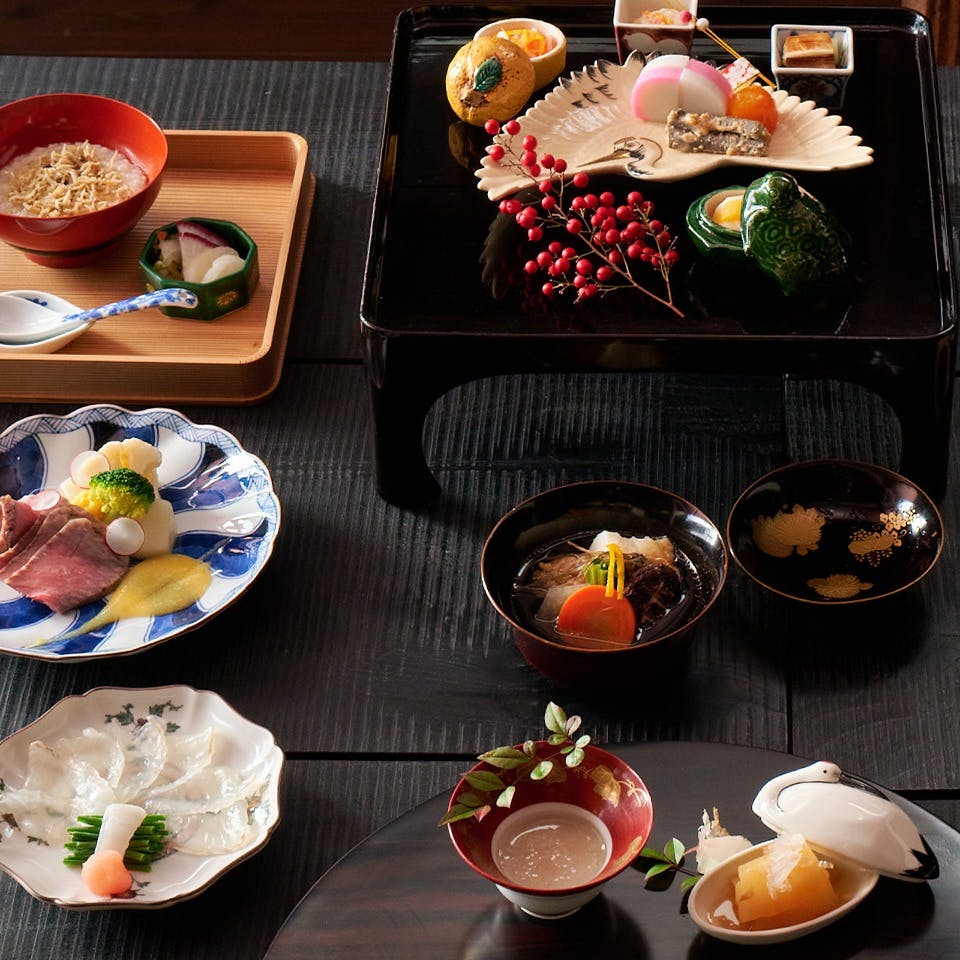 代々飯沼家当主家族が住み継いできた築約400年の「母屋」を、約4年の歳月を経て日本酒と二十四節気料理が味わえる「きのえねomoya」へと改修。名店「よし邑」の料理長を監修にむかえた旬の料理。そして、蔵元でしか味わえない特別な日本酒。ゆったりと配置された客席と、古民家の落ち着いた空間で、上質な時間をおたのしみください。