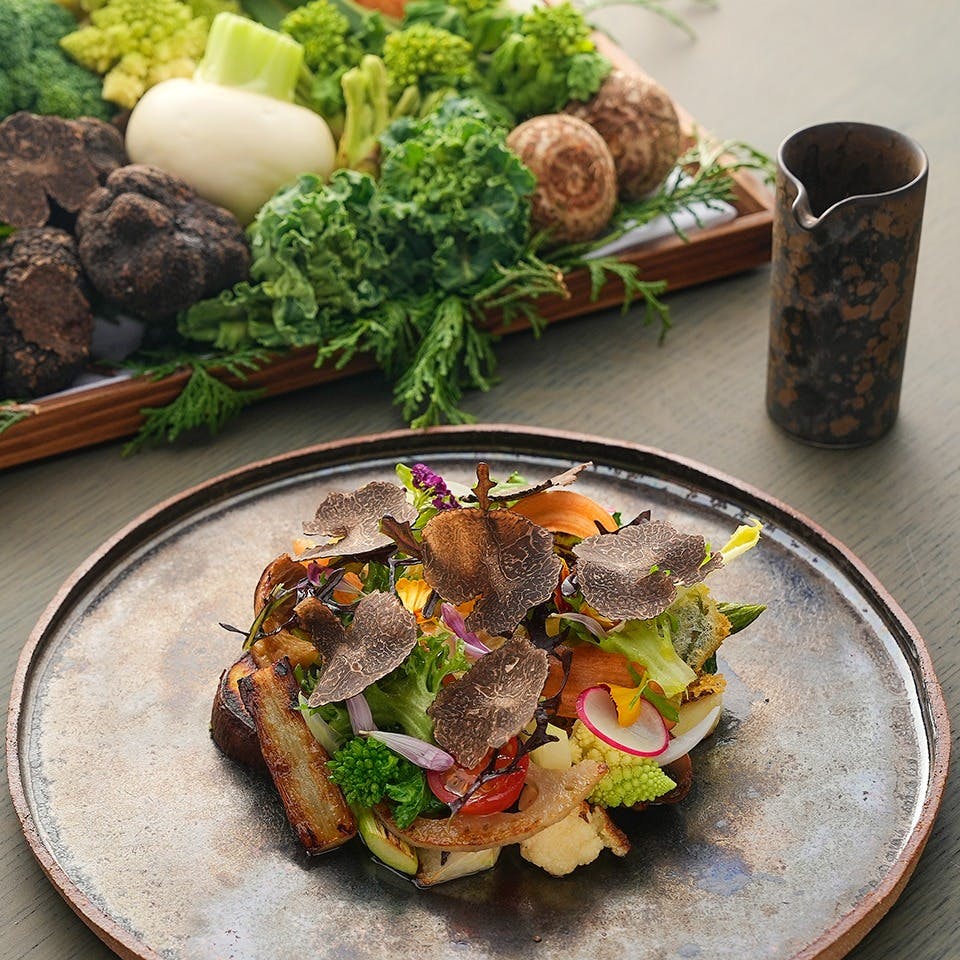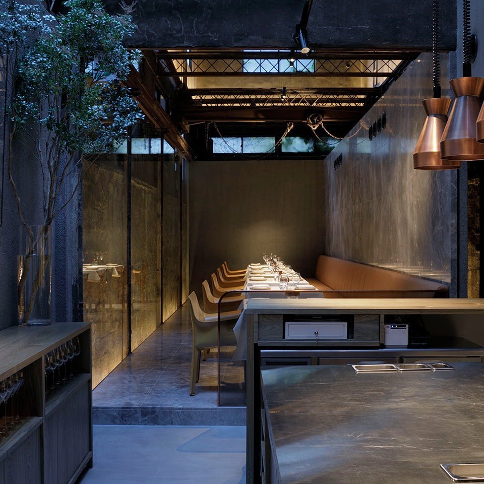 生活に必要不可欠である火・土・水・風の“四元素”を料理に取り入れた【genso】。どのジャンルにも属さない創造性豊かな料理を愉しむことができます。メニューは旬の食材を用いて様々な技法を用いたフルコースのみ。目で見て愉しいインパクトのある盛付けも魅力です。主役の料理を引き立てるソムリエ厳選のワインやノンアルコールのペアリングも。鉄工所跡地の洗練された空間で特別なひと時をお過ごしいただけます。
