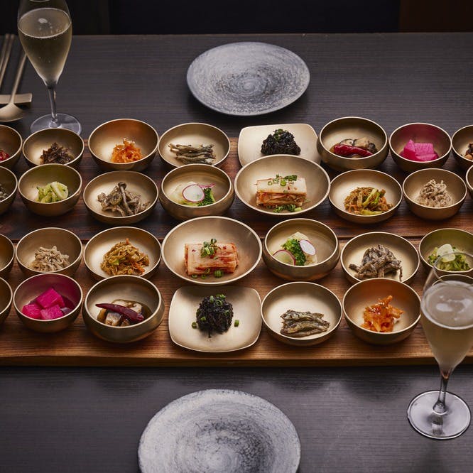 広尾駅からすぐ、旬の食材を美しく、大人なモダン宮廷料理を愉しめる当店「HASUO」。歴史ある韓国の宮廷料理を、モダンに五感を刺激する、全く新しい韓国料理でございます。ひとつひとつ丁寧に作られた旬のパンチャン(おかず)は、細部へのこだわりが光る当店の看板メニューです。美しき韓国の伝統文化を、上質な空間でゆっくりと味わう。そんな贅沢なひとときをお約束いたします。
