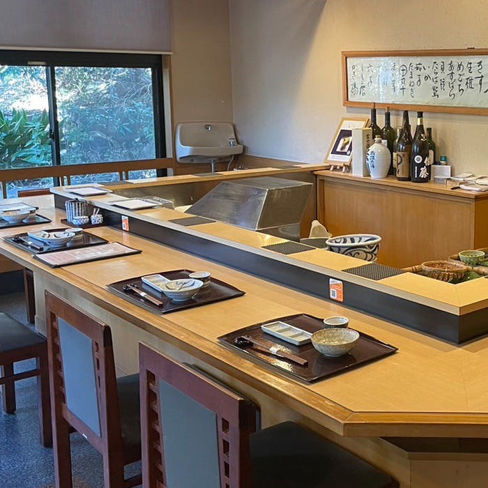 自然豊かな伊豆一碧湖にほど近い場所に位置する【天冨良 天美】。伊東ならではの新鮮な地魚やお野菜を、カウンター席で1つ1つ揚げたてをお召し上がりいただけます。専門店で20年修行した大将が揚げる本格的な天ぷらは、素材の旨味が存分に引き出され、噛みしめるほどに味わいが口の中に広がります。季節には蕗の薹タラの芽などの自然の恵みをお楽しみ頂けます。全席カウンター席で、コースでお出しするサクサクの天ぷらを揚げたてでご堪能ください。