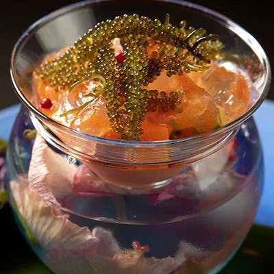 ラトリエは沖縄県産食材を中心にフレンチをベースに、ここでしか味わうことができない、最高の料理をご用意。沖縄以外の食材や料理もお任せください。例えば、「おふたりのご出身地の食材」を使った料理や、国内・海外など「思い出の旅行先の料理」など、おふたりのご希望や、想いを聞かせてください。