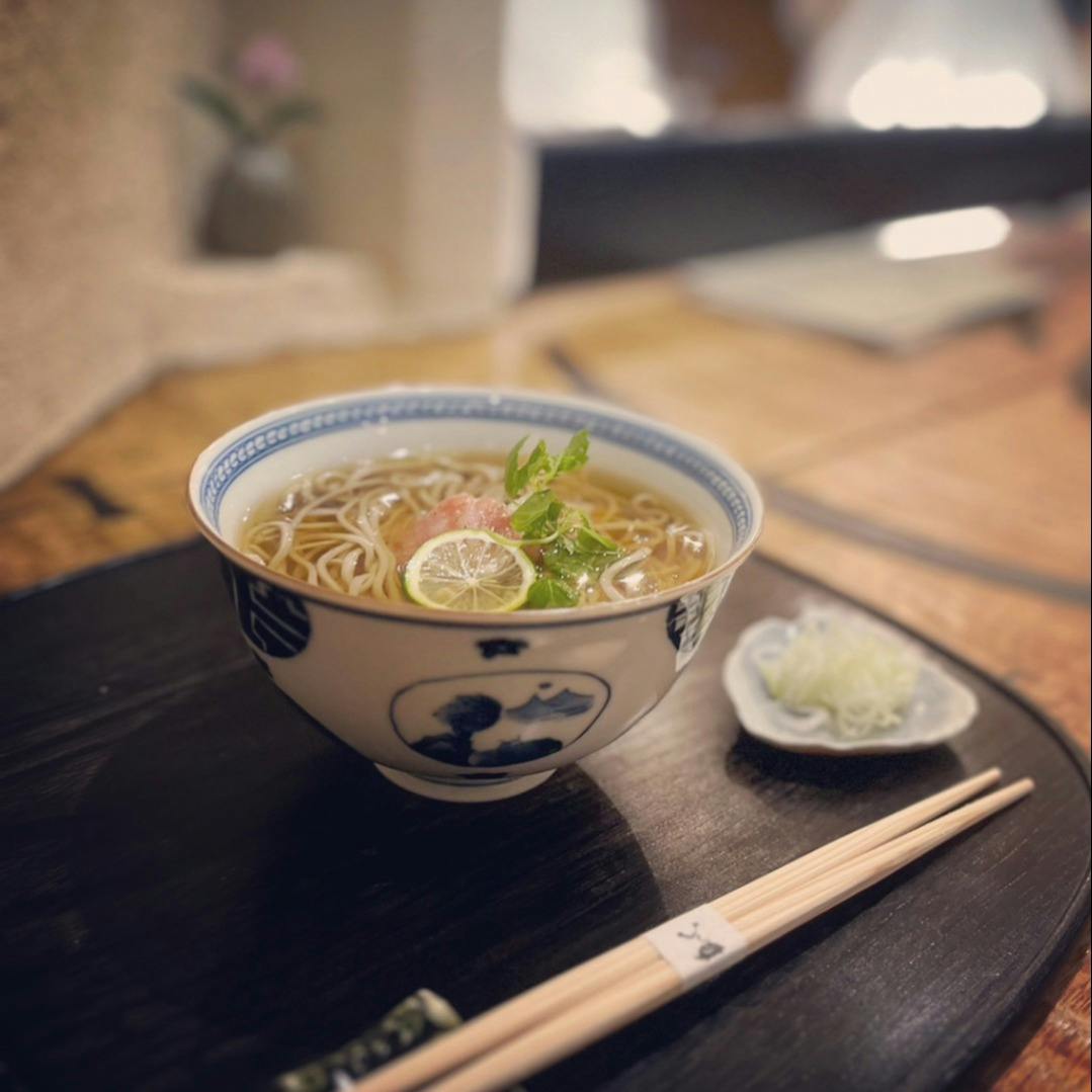 両国の名店【ほそ川】出身という前評判もあって、2021年11月のオープン直後から注目浴びている平山周氏。独立前には日本料理店でも働くなどして引き出しを増やし、日本酒のあてに最適の一品料理も充実させています。「蕎麦のみサクッとでも、飲みながらゆっくりでもお客様の好きなスタイルで楽しんでもらえたら」と平山氏。石臼で自家製粉して打つ十割蕎麦は、コシの強さ、エッジがキリッと立った喉越しの良さが特徴。蕎麦の風味を味わうせいろだけでなく、富山から届く白魚のぶっかけなど、季節の食材を合わせた蕎麦もオススメ。「今後は産地を巡るなど、食材との関わりも深めてこの店ならではの個性をさらに出していきたい」と意欲満々です。