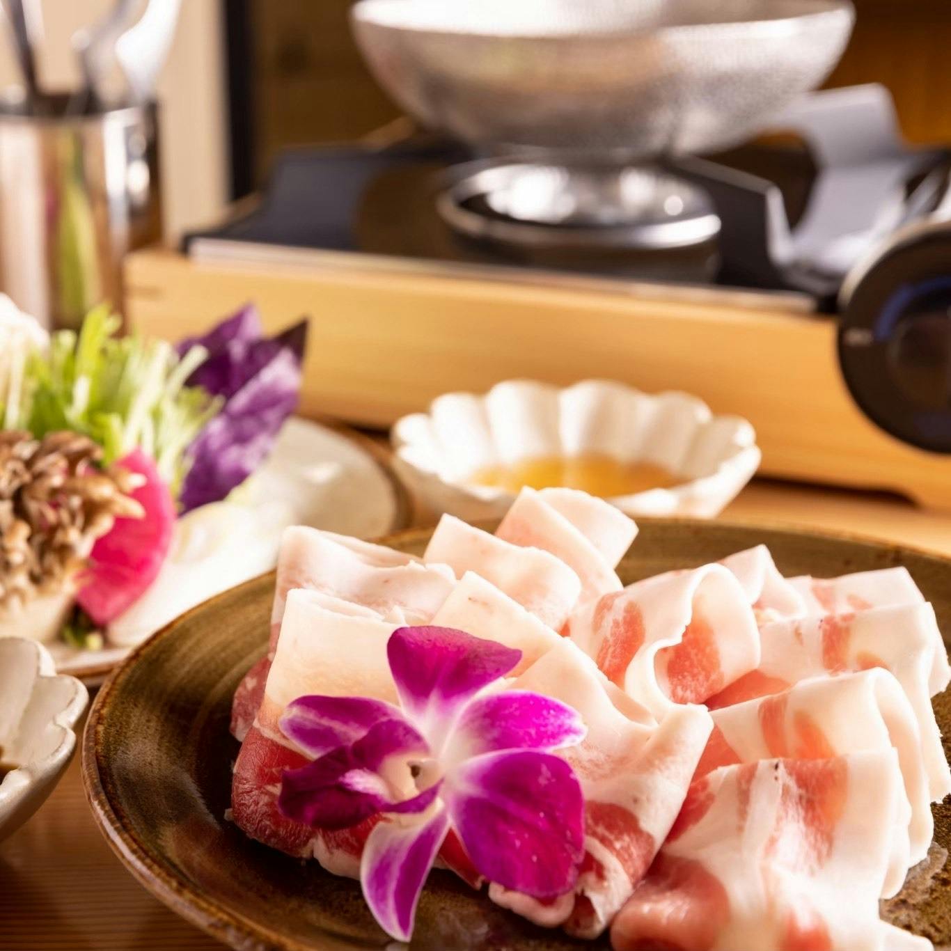 島黒アグーや和牛を追求して得た知識と培った技術を駆使して生まれた、コース料理をぞんぶんに味わえる「久米家」。琉球在来豚アグーの純血種「島黒アグー豚」のしゃぶしゃぶをメインとしたコースがオススメです。モダンで高級感あふれる空間の中、料理を際立たせてくれるお皿や酒器には有馬焼ややちむん焼などを使用。プライベートが守られる完全個室は、大切な人との食事に最適です。デートや記念日、接待、旅行などで心に残る時間を過ごせる料理店となっております。