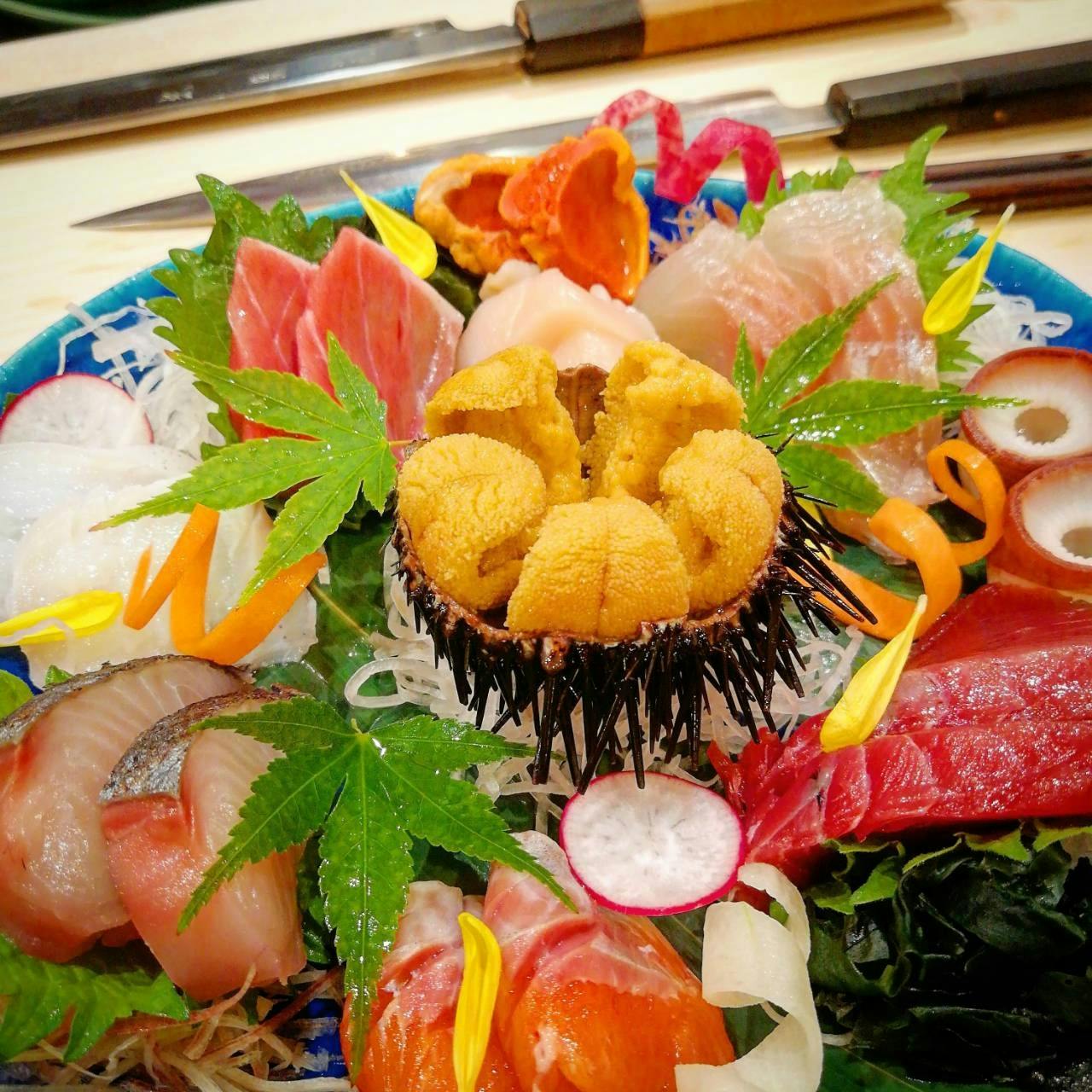 和と洋がきれいに融合した雰囲気の中で、お酒との相性にこだわった上質な和食が楽しめる【George(ジョージ)】。ホワイトをベースとしたキレイな外装に誘われ店頭に立つと、老舗酒屋の店頭などでよく見かける杉玉がお客様をお迎えします。ゆっくり扉をくぐり店内に入れば、秋田杉の大きな一枚板のカウンターが目に飛び込んできます。料理人のこだわりが随所に詰まった店内で楽しめるのは、【刺身】や【炙 り焼き】など、地元宮城の食材を使った料理の数々。また、ソムリエやSAKE DIPLOMAなどの資格を持つ料理人が厳選した、料理との相性を考えて選んだ豊富なお酒も自慢です。