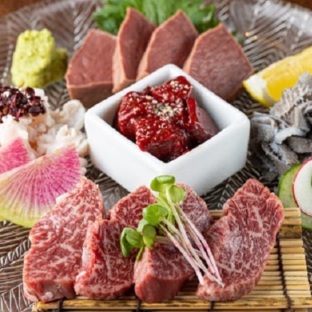 長期飼育の雌牛のみを取り扱うやきにくポッサムチプ。長年培ってきたノウハウを活かして仕入れる、神戸ビーフや純血但馬完熟近江牛、新鮮なホルモンのお刺身をご用意しております。当店だからこそ味わえる、独特のとろける食感をお楽しみくださいませ。生ものから〆まで、絶品揃いのコースも人気です。駅チカでアクセスも良好です。目でも舌でも楽しめる品々を揃えてお待ちしております。