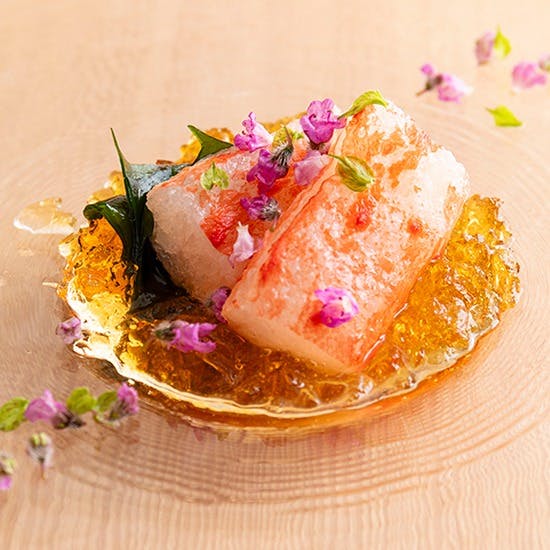 「鮨ふくじゅ」は世界の美食家を引きつける東京の名店。職人の真摯な仕事と高度な技術が際立つ。大将が板場で巧みな手さばきで、師から受け継いだ究極の一貫を握ります。厳選された食材と確かな目利きにより、季節感あふれるやさしい鮨を提供。魚の旨味を最大限に引き出すため寝かせ、味、香り、食感など、舌が納得するものだけが出されます。つまみと鮨が巧みに組み合わさった贅沢な饗宴で、感嘆の味わいが堪能できます。カウンター、個室どちらも完備されているため、会食や接待、記念日でのご利用など様々なシーンでご利用いただけます。