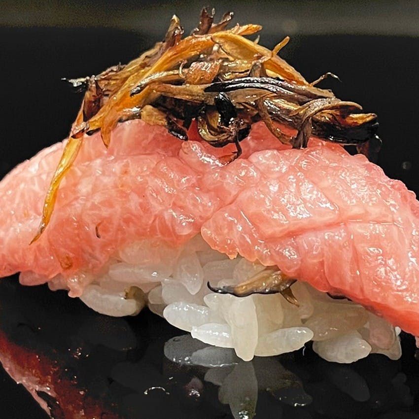 トロやウニなどお寿司の醍醐味の人気ネタを県内外から吟味し、納得できるものを揃えています。また、トロ+黒まいたけや鯛+柿のもと(食用菊)などこの地域の素材を組み合わせた店主オリジナルのお寿司も。シャリは地元南魚沼の減農薬減化学肥料栽培こしひかりとこしいぶきブレンド。伝統的江戸前の技と新しいアイデアで握ります。水と空気の美味しいこの地域ならではの、お寿司にあう淡麗な魚沼の銘酒とともにお楽しみください。