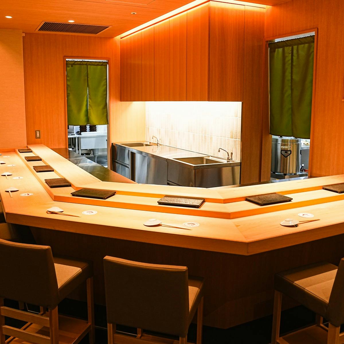 皇居のお堀に面した丸の内二丁目、丸ビルの真向かいの三菱商事本社ビル地下一階に構える店内は、カウンター8席、テーブル22席(うち個室2室)と小振りながら、そこは勘八、江戸前の確かな腕を持つ板前が熟練の技を披露します。丸の内でのショッピング、記念日、商談や接待、会食でも是非ご利用ください。