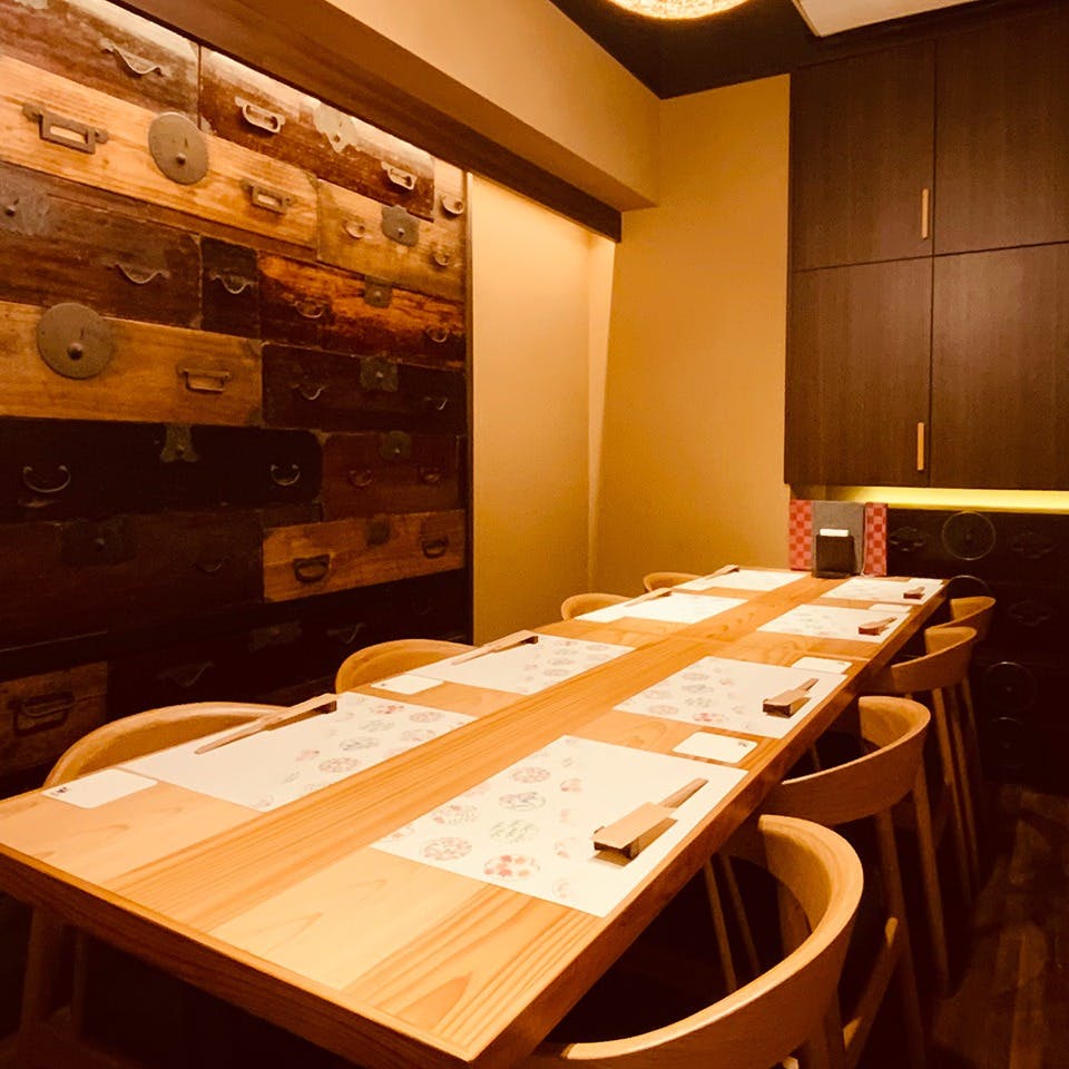 岩手直送の新鮮な「厳選海鮮」や蔵元直送の全国の「銘柄地酒」をお楽しみいただける当店。日本酒は常時30種類ほどを取り揃えており、焼酎はボトルキープも可能です。旬の素材を活かしたお料理を、お酒と一緒にご堪能ください。会社宴会、接待、女子会にも最適な各種コースもご用意しております。木の温もりを感じるゆったりと落ち着ける空間で、大切な人と、特別なひとときをお過ごしください。1日1組の完全個室もご用意しておりますので、ぜひ最適なシーンでご利用くださいませ。
