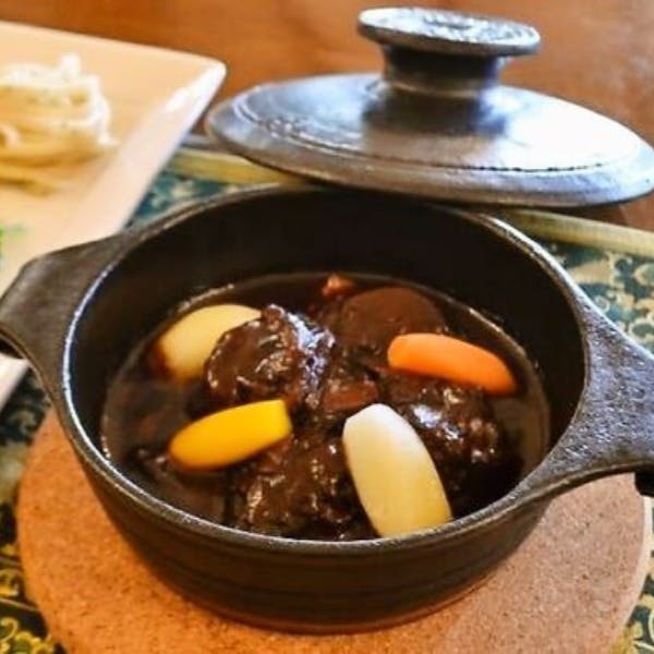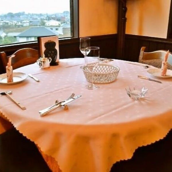 勝沼にあるワイナリーのワインも取り揃えております。長崎の大浦天主堂をイメージした内装は天井が高く、窓からはぶどう畑と勝沼町内が一望でき夜はとてもロマンチックな夜景も楽しめます。無農薬で育てられた野菜などできるだけ地元産を使用しております。ゆったりとした雰囲気の中で、素敵なひとときをお過ごしください。