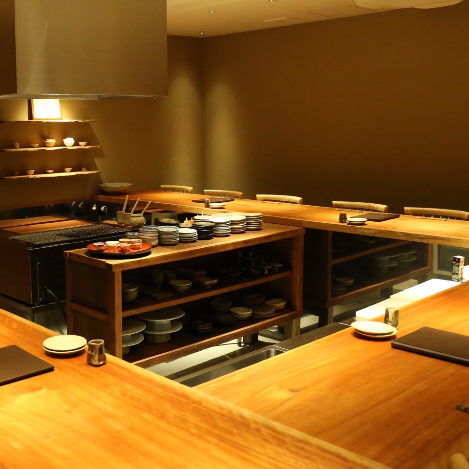 なんば駅より徒歩5分、街中にありながら古民家の風情が漂う「おくを 難波店」。天満にも店舗を展開する「おくおグループ」の集大成。霜降り牛タンしゃぶや極上厚切り牛タン串などの牛タン料理に、福岡発祥・定番の野菜巻き串、もつなべや時代から愛され続けてきた黒毛和牛もつ鍋が名物のお店です。店内は迫力のある上質なカウンター席に、テーブル席は全て個室でご用意。接待やデート、記念日に最適な上質空間となっております。