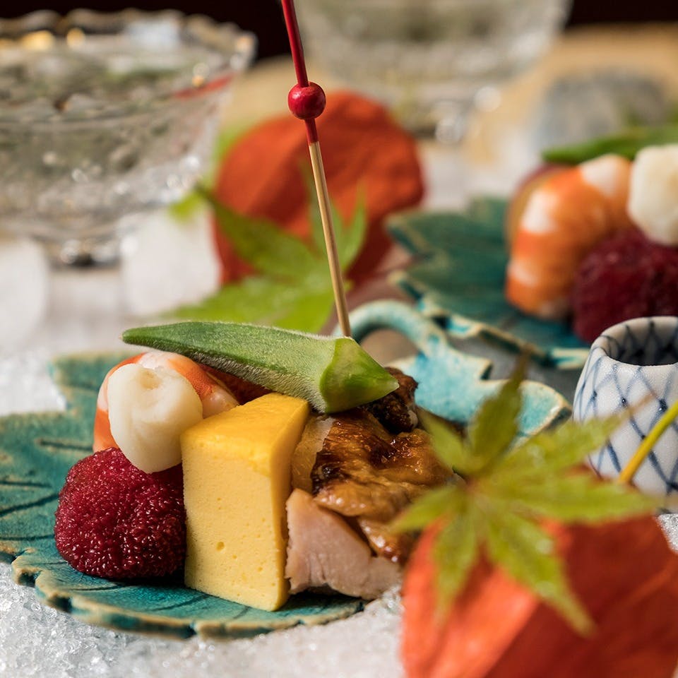日々、心新たに客人を迎え、その度ごとの出逢いを大切にする。ひと時を心ゆくまで楽しんでいただくために、味わいの空間をいかに演出するかも、料理に次ぐもてなしと心得ます。季節を織り込み、いつの時も新鮮なしつらえでお迎えいたします。