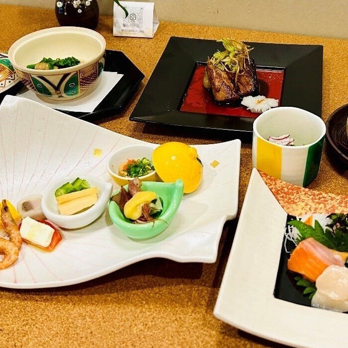 フレンチの要素を取り入れた本格的な日本料理を提供するお店「季節料理 朝菜」。季節ごとに変わる旬の食材を使い、お客様に最高の味わいを提供。店内は和モダンな落ち着いた空間で、ゆったりと寛げる雰囲気です。カウンターと半個室をご用意しておりますので、シーンによりお好みのお席をお選びください。アラカルトやコース料理もご用意しており、お祝い事には特に会席コースがおすすめです。普段使いやビジネスシーンなど、料理の美味しさと心地よい空間で、至福のひとときをお過ごしください。