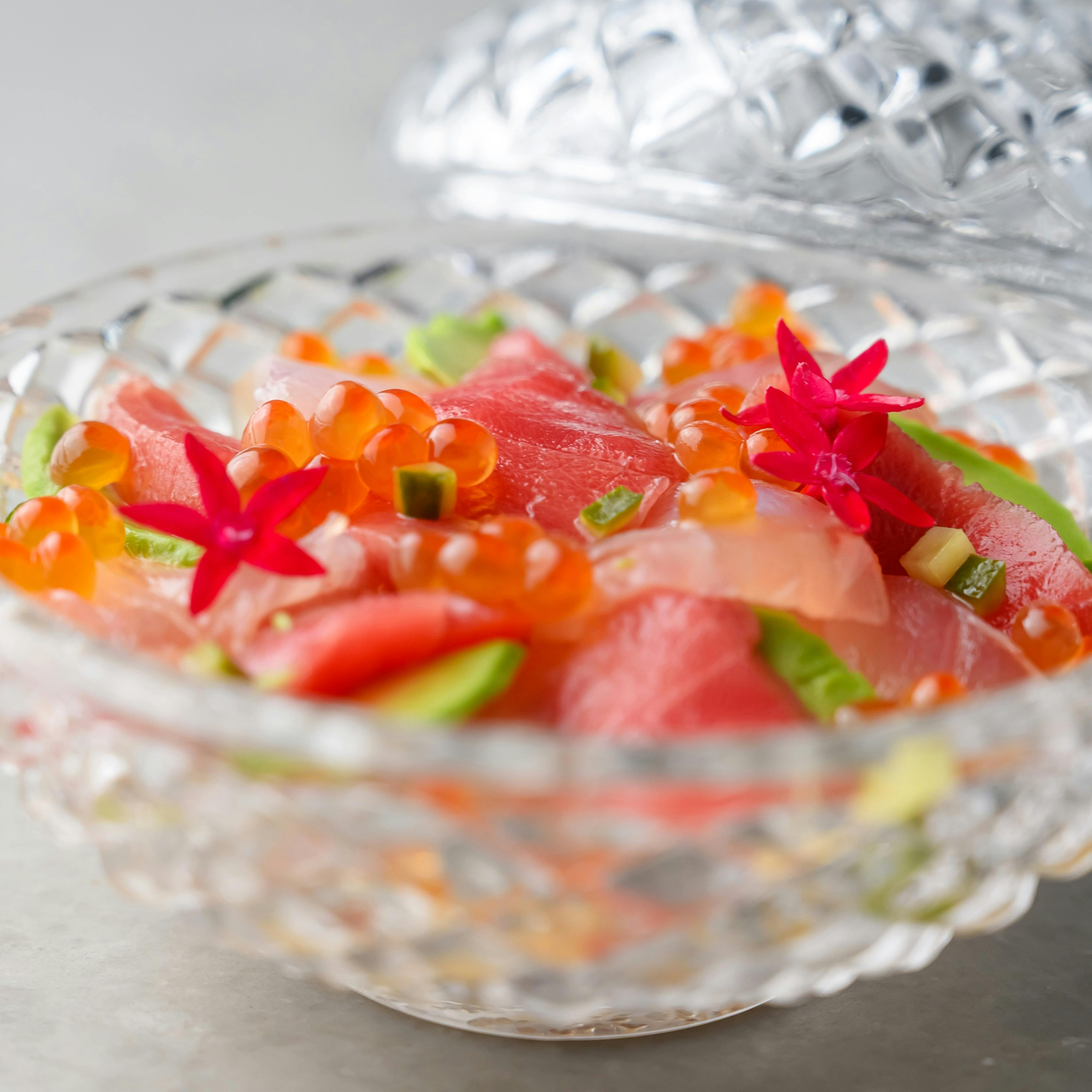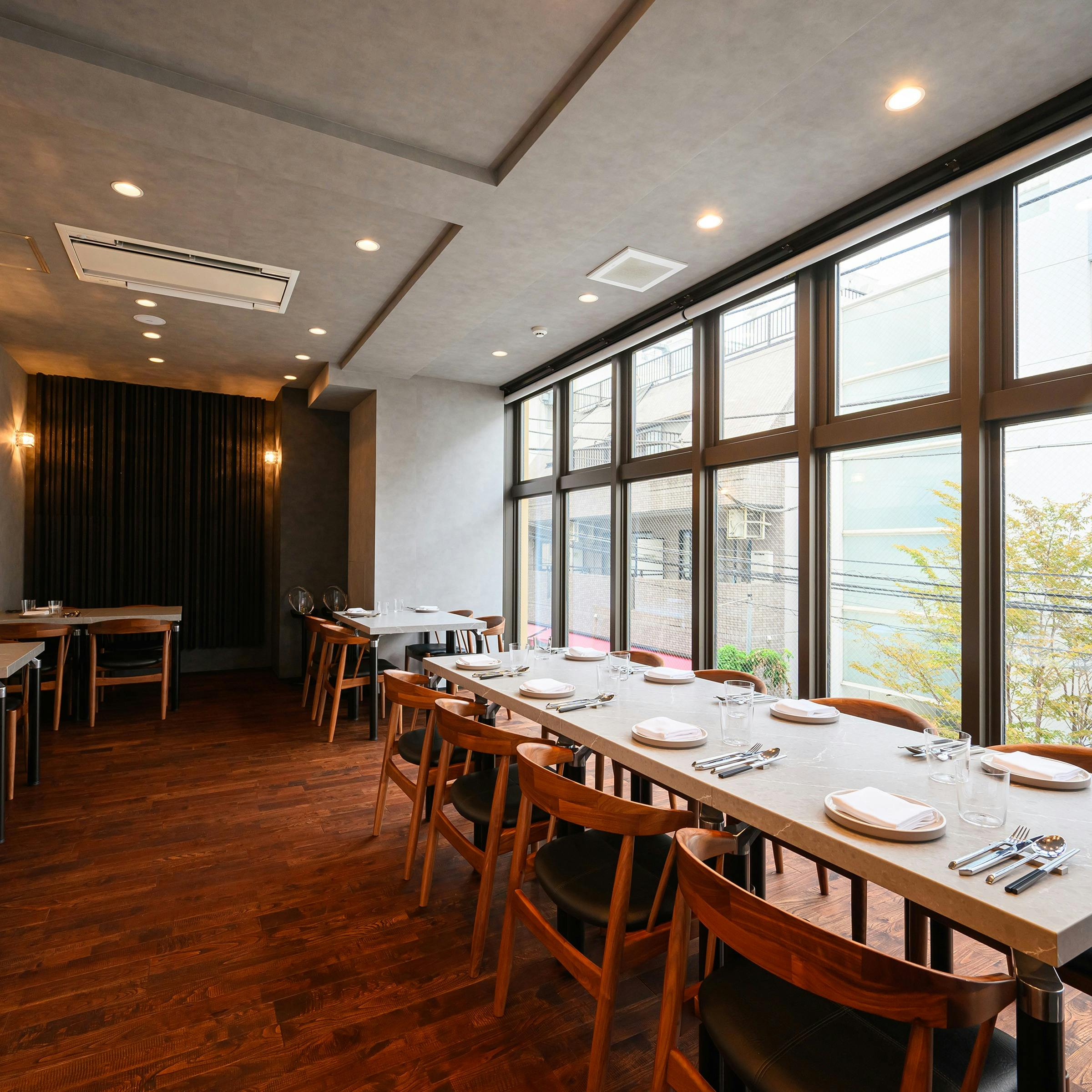 コース6500円~、アラカルト36品。新鮮で美味しい国産食材にこだわり、イタリアンをベースに和、フレンチを融合した絶品フュージョン料理をカジュアルに楽しめます。ワインはカリフォルニア、日本、フランスなど200銘柄を厳選。グラスやペアリングも豊富です。完全個室を備え、シックで開放的空間。日常使いから記念日、会食、接待、パーティー、お子様連れなど、さまざまなシーンでご利用ください。