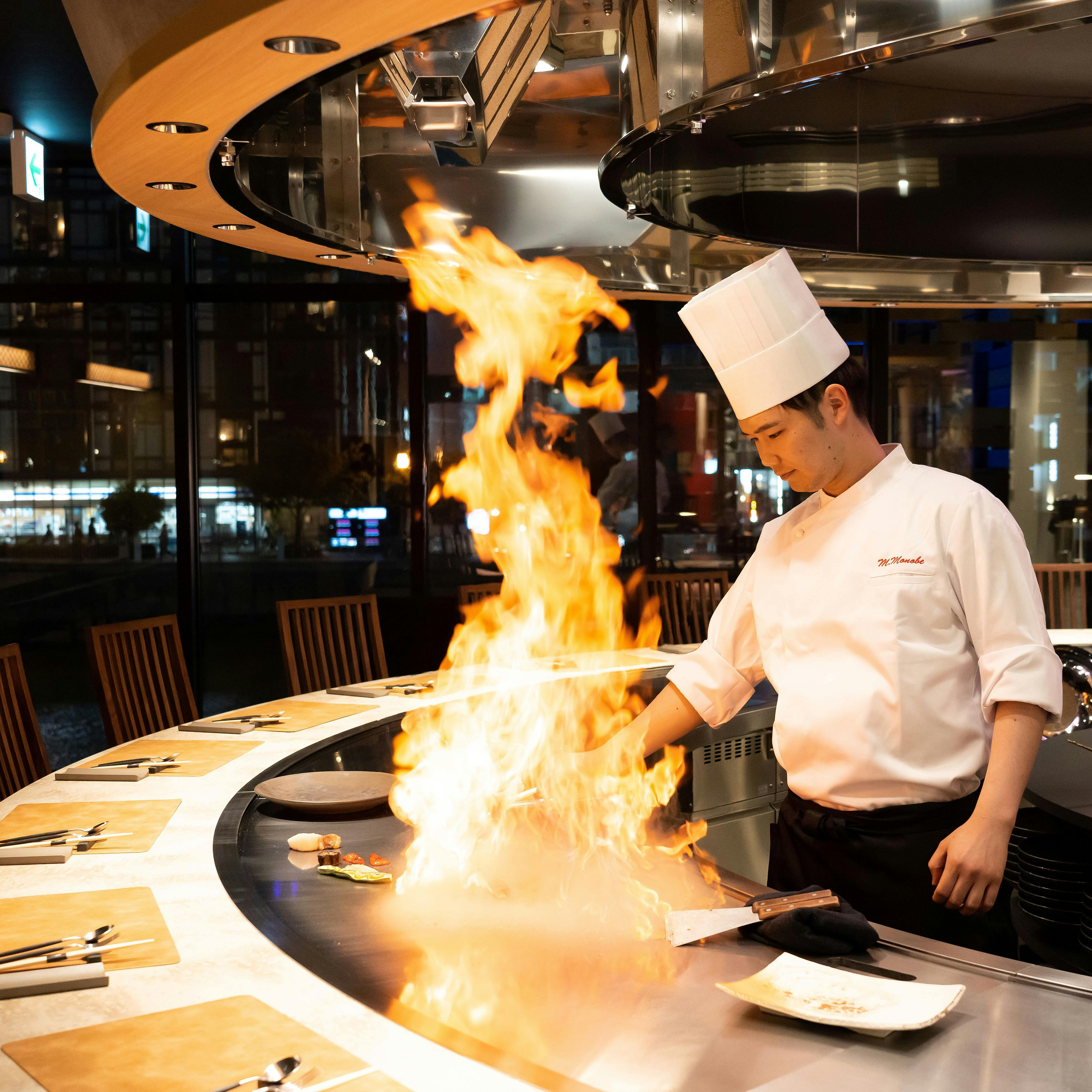 1956年に創業した「ニュー松坂」は厳選された食材を目の前で、創業以来変わらぬ「おもてなしの心」で調理をいたします。見た目にも美しい松阪牛や神戸牛。新鮮な海の食材。季節ごとに厳選される日本各地の多彩な野菜。自慢の食材がお客様の目の前で、シ ェフの鮮やかな手さばきにより調理され、焼きたてのおいしさをお楽しみいただけます。皆様のご来店をお待ちしております。