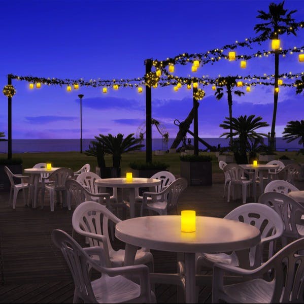 当店は、目の前に広がる海を眺めながら、太陽を浴びてのびのびと育った地野菜や近隣で採れた新鮮な魚介、地元産のオリーブオイルなど、モダンイタリア料理をお楽しみ頂けるダイニングです。野菜を中心に長崎の「じげもん」素材を使用した料理を、新しい発想でイタリア料理をベースにアレンジし、コースとアラカルトでご用意いたします。海を眺めるサンセットマリーナの芝生では、グランピング、ピクニック、BBQをリゾート感覚で一度にお楽しみいただけます。昼間は太陽の日差しを浴びながら、夕方は沈む夕日を眺め、夜はランタンの灯りを囲む、時間帯で異なる雰囲気でお過ごしください。