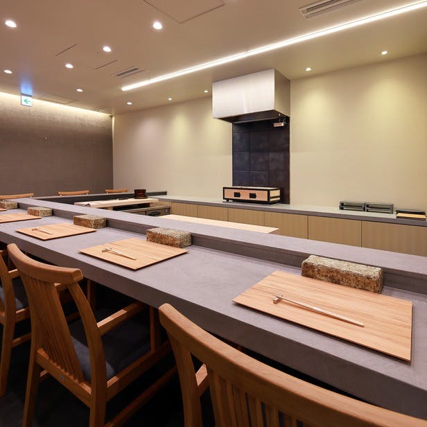 西麻布の隠れ家的存在【麻布 鮨 田名網】。都会的でスタイリッ シュなグレーを基調とした店内は、開放感あふれる空間で、カウンター席や完全個室を完備しています。ビジネスシーンからカジュアルな食事、大切な人とのデートや貸切宴会にまで、多彩なシーンでのご利用が可能です。