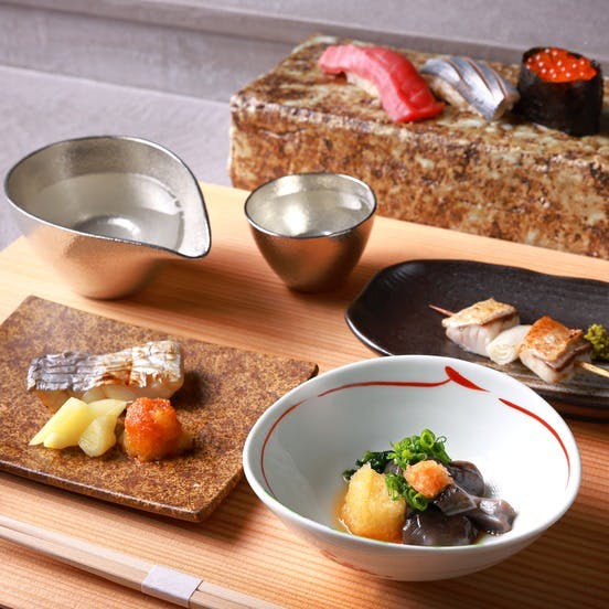 各種ドリンクとのペアリングも魅力の一つです。シャンパン、ワイン、日本酒をはじめとする種類豊富なお酒と、こだわりの鮨や一品料理を組み合わせてお楽しみいただけます。お客様の好みに合わせた最適なペアリングを提案し、食事を一層豊かなものにさせていただきます。
