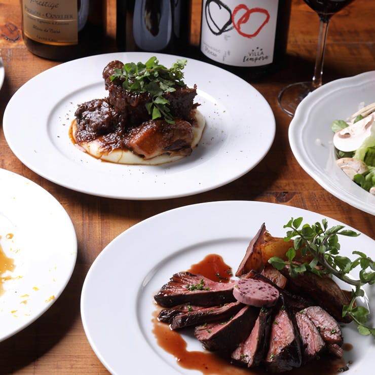 駅近ながら喧騒から少し外れた場所に位置する当店。手作りの本格ビストロ料理をご堪能いただけます。特に自慢の肉料理も一から手作りでご提供。牛や豚に加え鴨、鹿、猪、軍鶏など充実したラインナップをお楽しみいただけます。旬素材でお作りする季節のオリジナルメニューも豊富にご用意しております。50種類以上のワインと15種類以上のグラスワインもご一緒にご満喫ください。日常遣いから特別なシーンまで幅広くご利用いただけます。