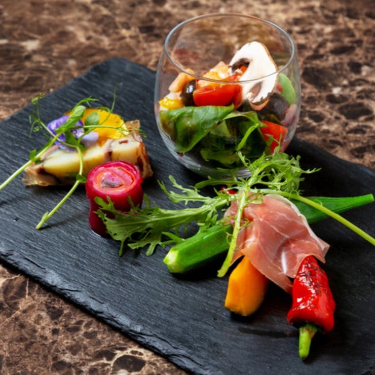 「京料理×フレンチ×健康」をテーマに創作したお料理を提供する京都ビストロ、「ピエール プレシウーズ」。季節の新鮮な野菜や京素材を奏でたお料理と気品あふれるワインに合わせたディナーコースをご用意いたしております。また彩り豊かな30種以上の絶品アラカルト料理とワインもご堪能いただけます。気になるカロリーを通常の3分の1程度に抑えた健康フレンチは特に女性に好評です。見た目の華やかさと美味しさ。当店自慢のフレンチ会席をどうぞお楽しみください。