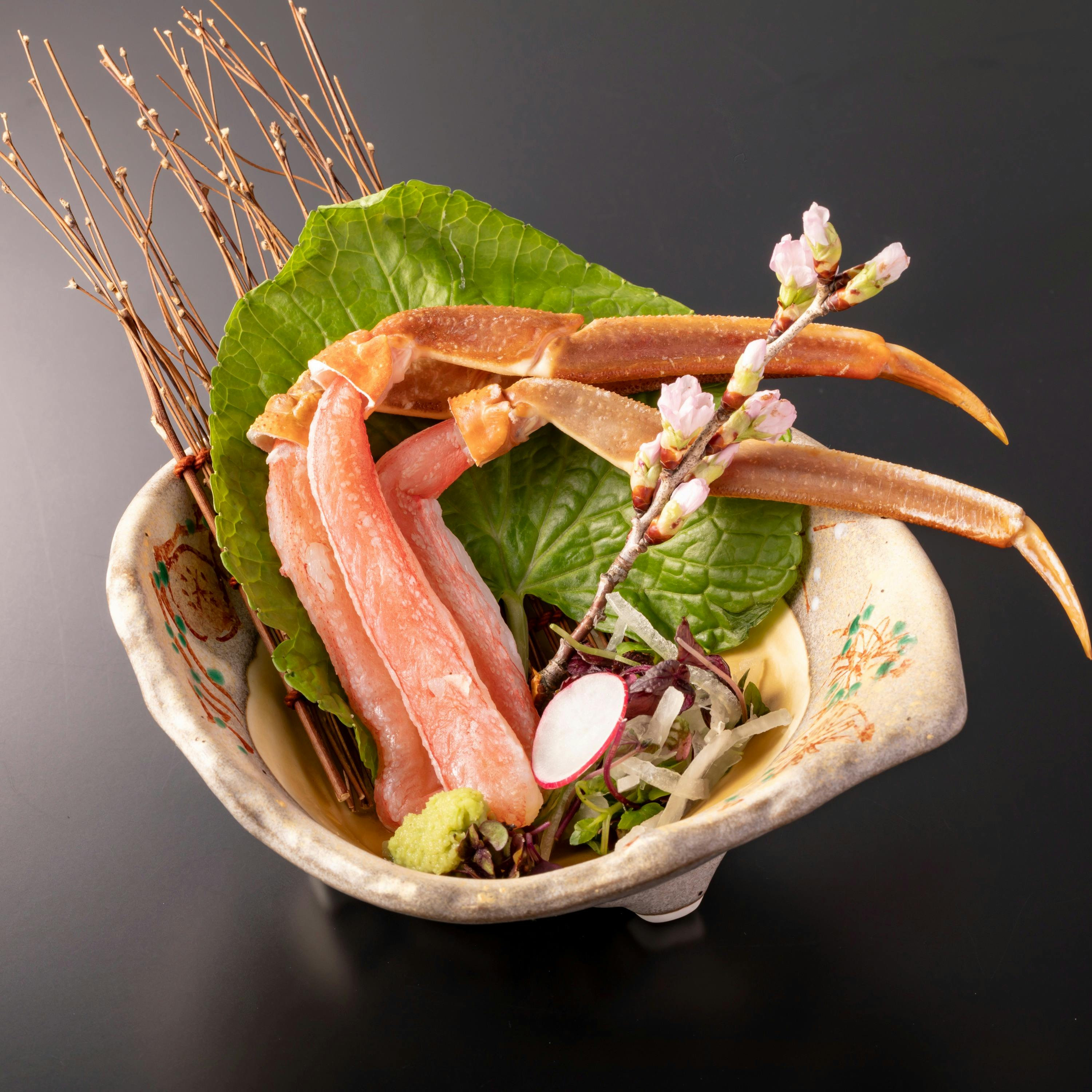 蟹の種類に応じて、刺身、しゃぶしゃぶ、焼物、ボイルなど、様々な調理法で最高の料理を提供いたします。厳選した新鮮な旬の蟹は身がぎっしりと詰まり、蟹身の甘さと味噌の濃厚さを存分に味わっていただけます。蟹の美味しさを追求した当店ならではの贅沢な味わい、ゆったりと寛げる個室で心ゆくまでお愉しみください。