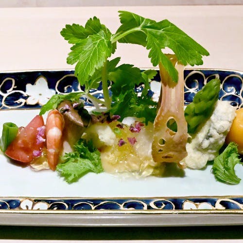 【野菜割烹 あき吉】では、お野菜を主役に置いた割烹料理を落ち着いた雰囲気でゆっくりとお愉しみいただけます。 店内はカウンター8席と6人掛けのテーブルが1卓の居心地の良い空間。季節の野菜を中心としたコース料理をご用意しております。店主の人柄のようにふんわりと優しい料理の数々に、心もあたたまることでしょう。細部まで工夫を凝らした繊細な料理を心ゆくまでご堪能ください。