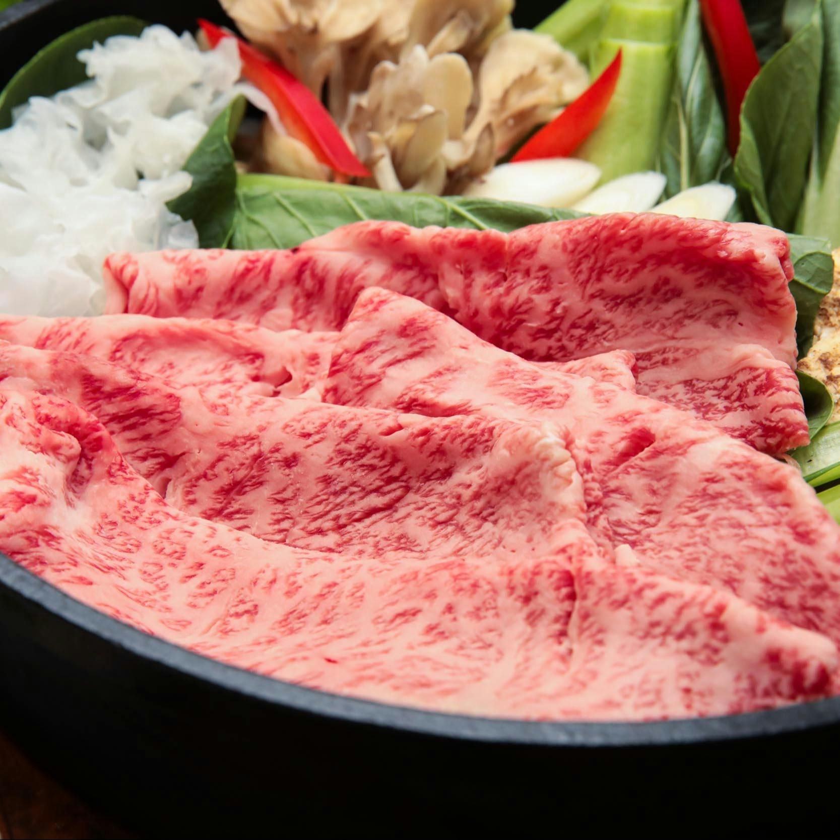 当店では、岐阜県が誇る飛騨牛や上質な黒毛和牛をご提供。一番のおすすめ【すき焼き】や【しゃぶしゃぶ】、【ステーキ】など様々なメニューにてご堪能いただけます。また、記念日やご接待にも相応しい贅沢なコースもご利用いただけますのでぜひ。お飲み物は、岐阜県産の地酒を中心に豊富な銘柄をご用意。店内には個室も完備しておりますので、肩ひじ張らずに過ごせる、アットホームな空間で至福のひと時をお過ごしください。