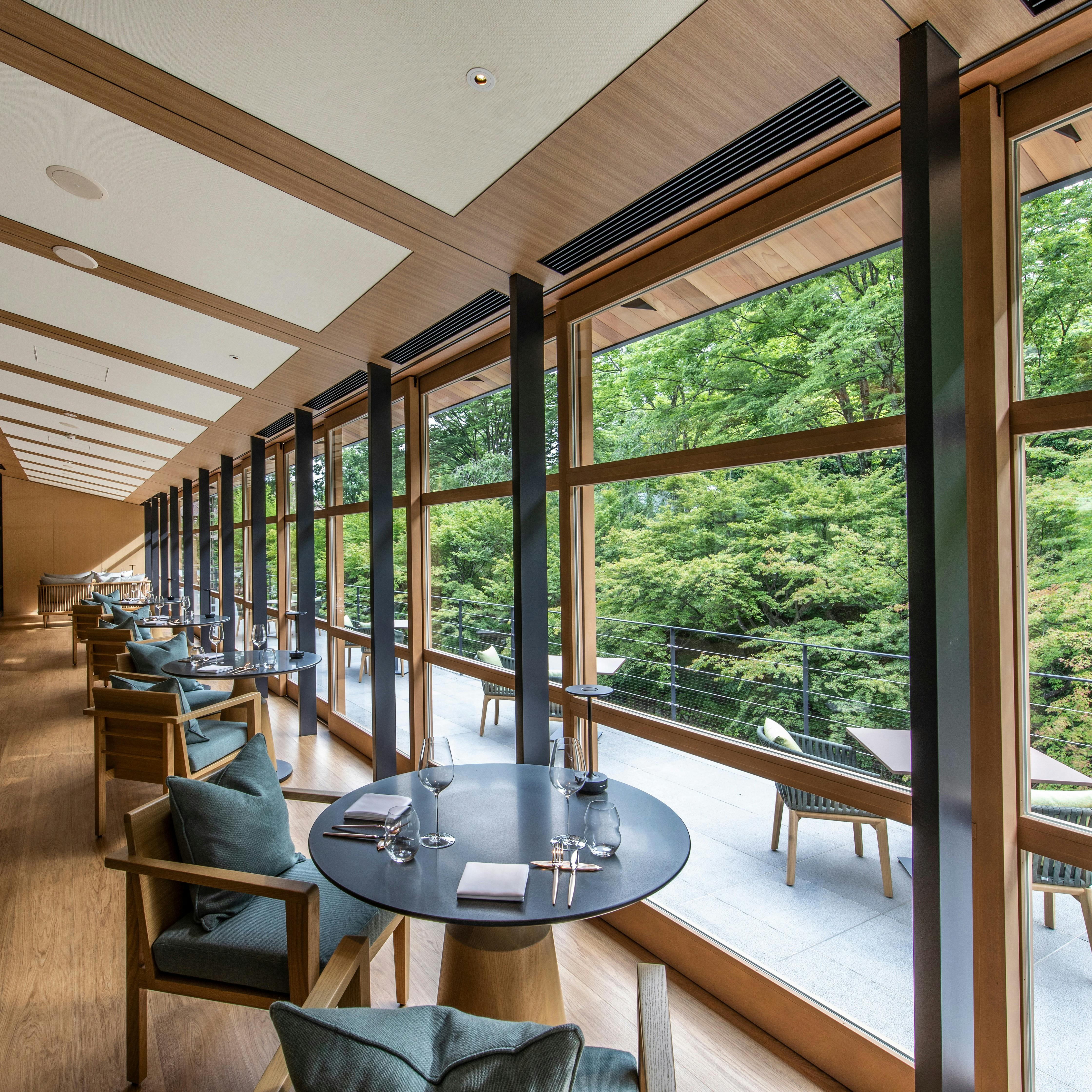 豊かな自然に包まれたレストラン「TENJIN」のアフタヌーンティーは、旬の果物や地元の食材を使用したスイーツ&セイボリーを、ホテルのシンボルツリーである北山杉に見立てたティースタンドでご用意。また、季節の味覚を取り入れたパフェもご提供いたします。都会の喧騒から離れたリゾートエリアで、至福のティータイムをお楽しみください。