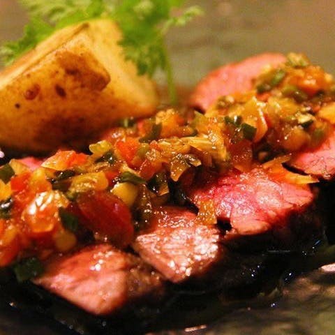「ロティスリー・ランプ」が、9年営んだ白金から地元千早へ移転。フレンチと肉料理に精通したシェフによるオリジナリティ溢れる肉割烹をご提供いたします。厳選した九州産黒毛和牛や県産野菜を使用し、フランス料理の流れで供する逸品の数々を、どうぞお箸でお召し上がりください。店内は落ち着いた雰囲気の大人の隠れ家。普段使いはもちろん、記念日などに最適です。21時からはバータイム。2次会にもぜひご利用ください。